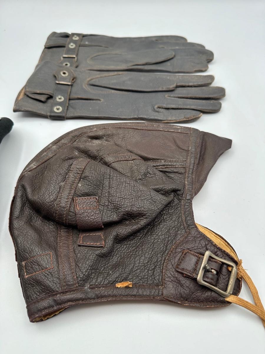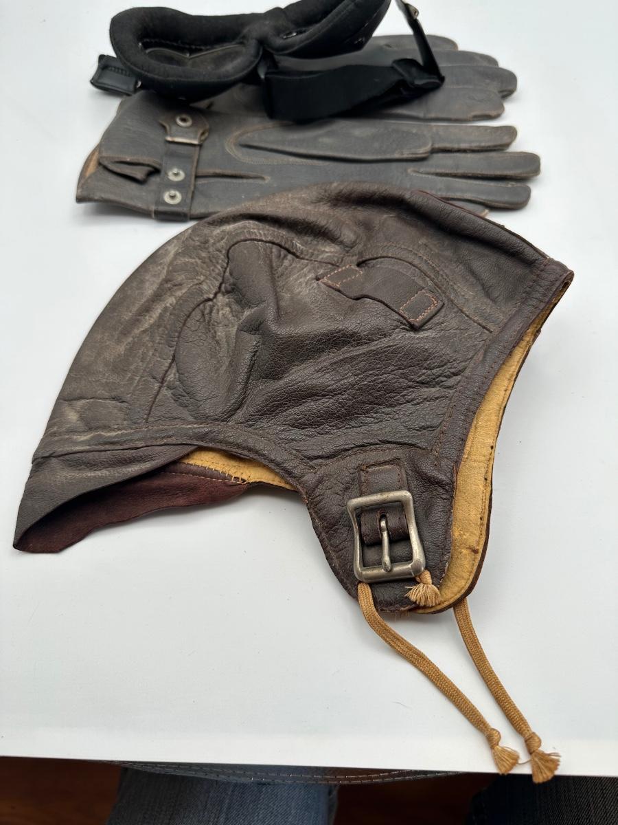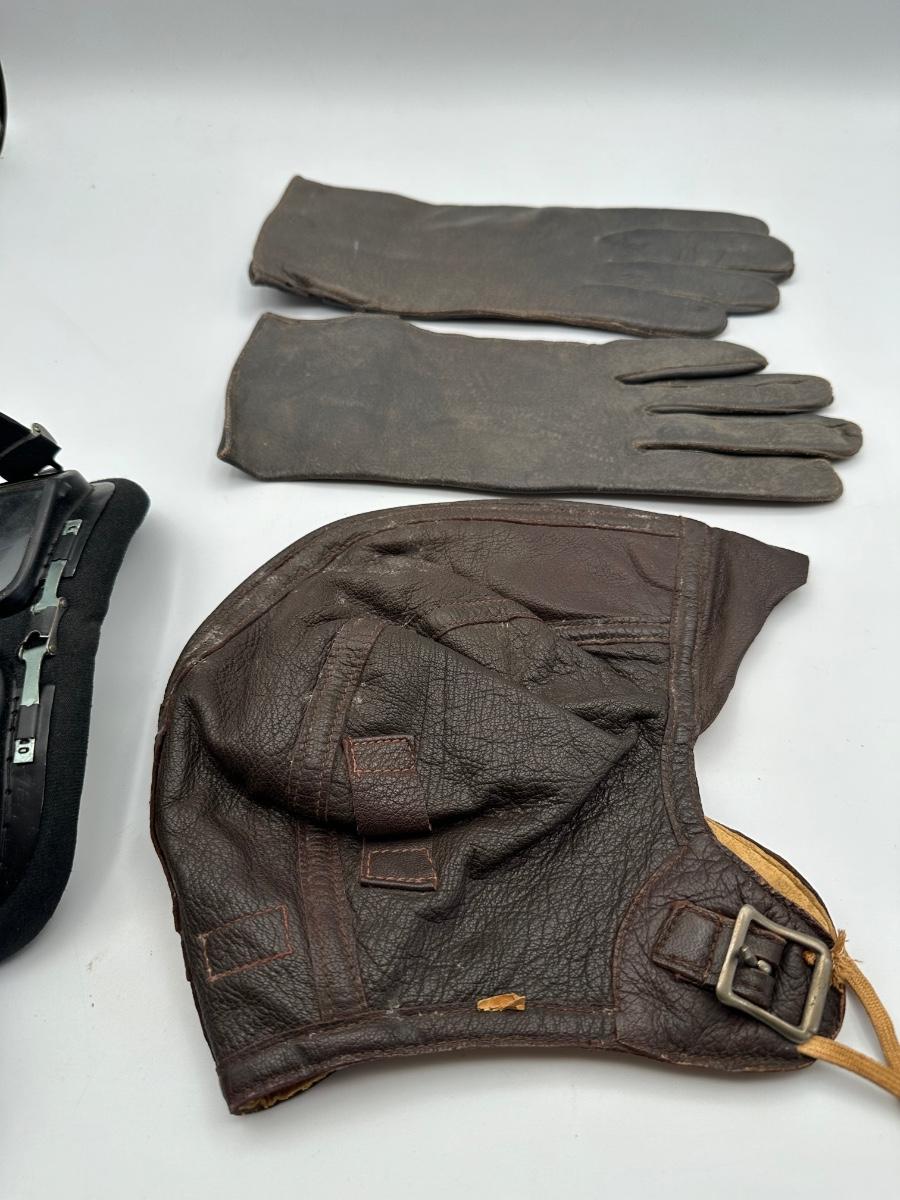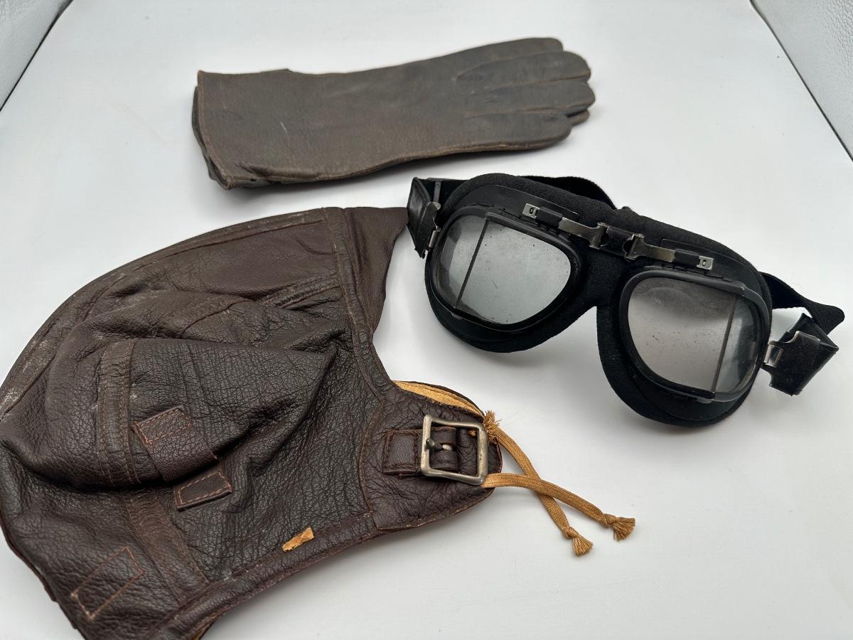 WW2 Leather Flight Helmet, Gloves & Goggles