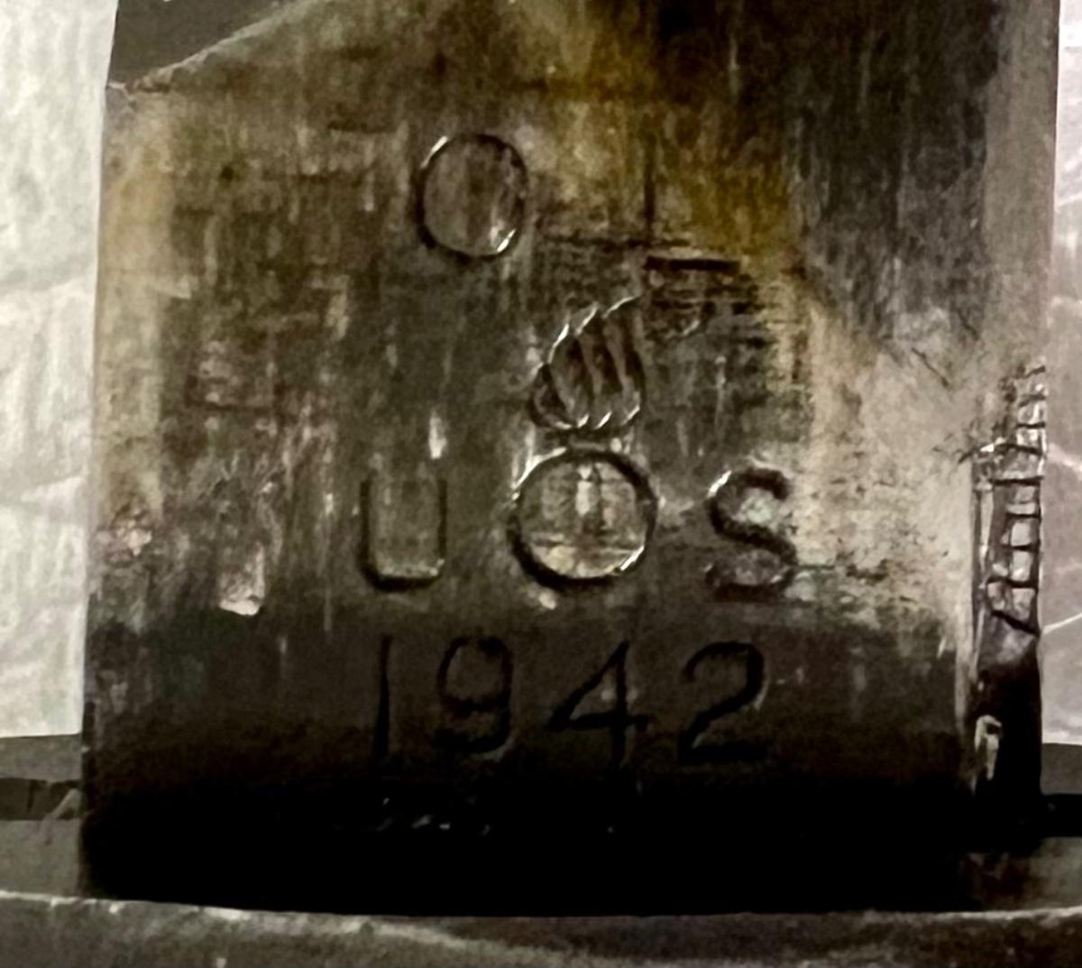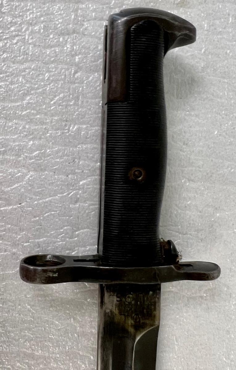 Made by Oneida Limited. Dated 1942. Includes scabbard. Blade length is 15.5". SOLD AS IS.