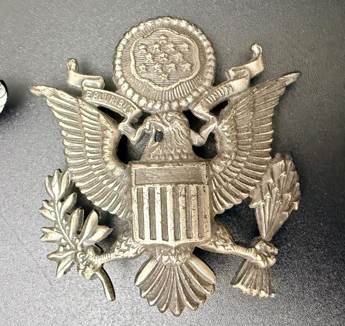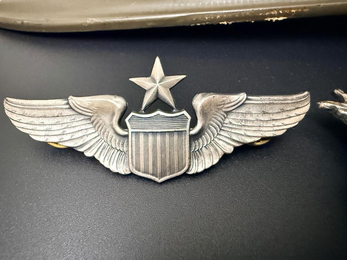 3 Bonus miliary pins - Meyer New York Silver Kill Officer's cap badge and two wings