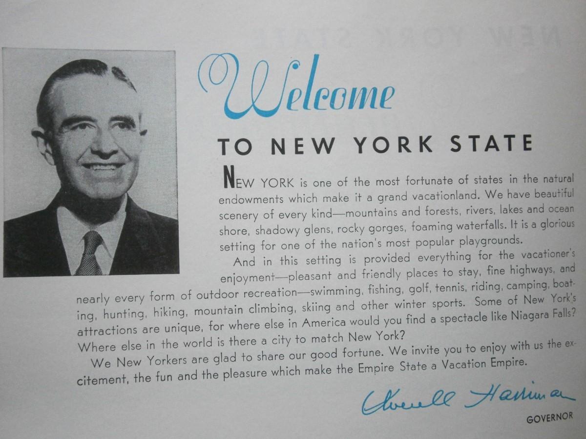 Vintage New York State Vacationlands Travel 1955 * AVERELL HARRIMON GOVENOR, 7 1/2 x 5 1/2 inches, 192 pages.