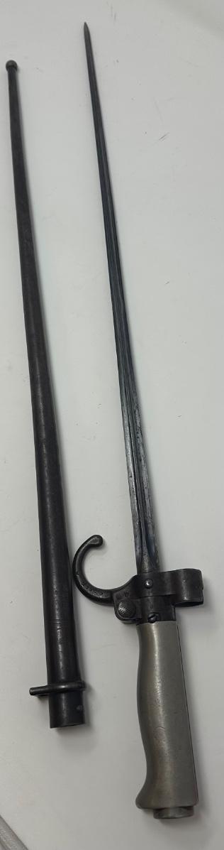 An early M 1886 Lebel Bayonet produced for the French Army. Overall length 25 3/4”