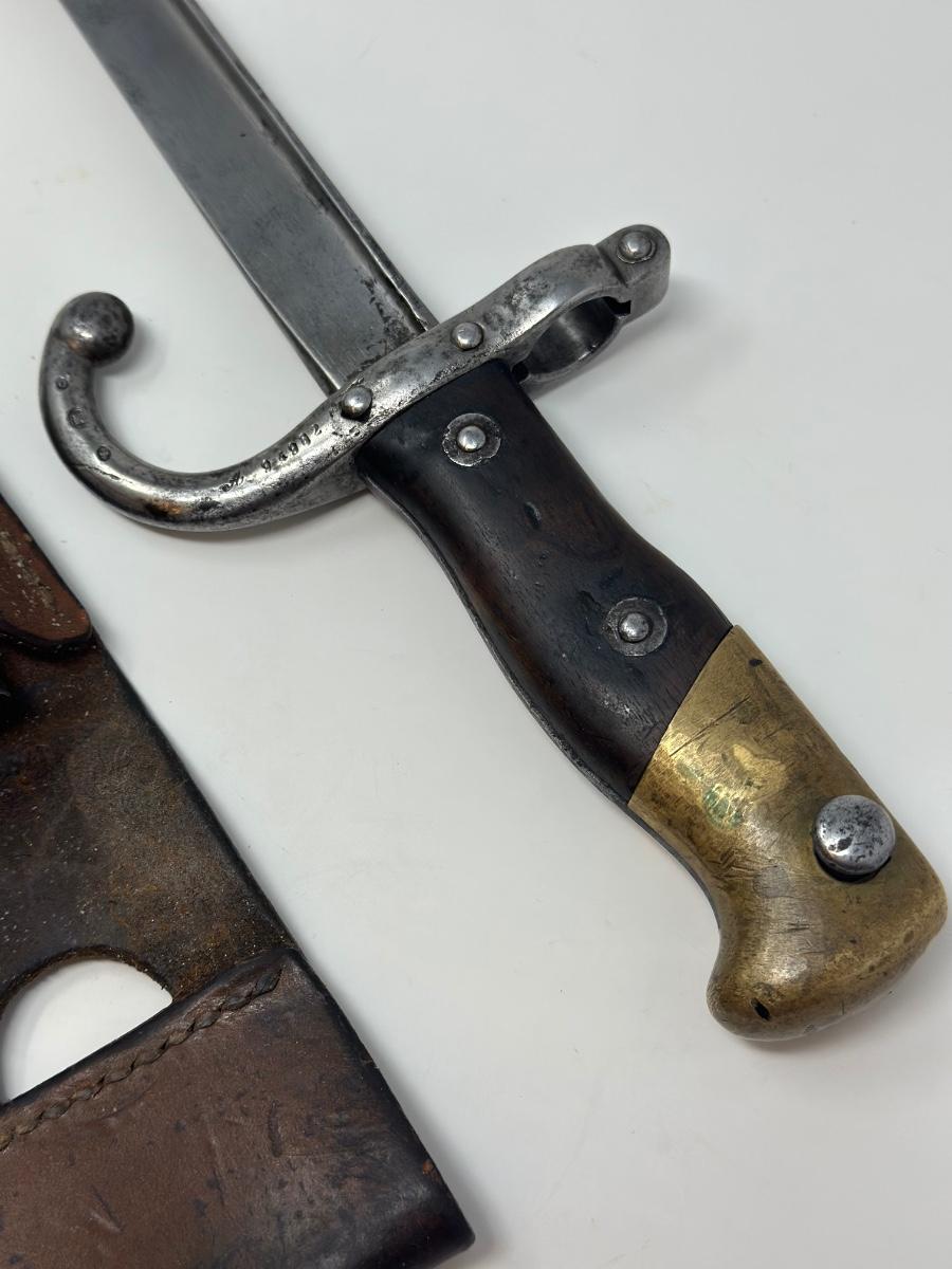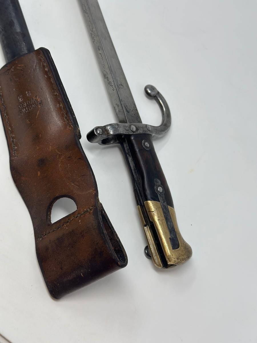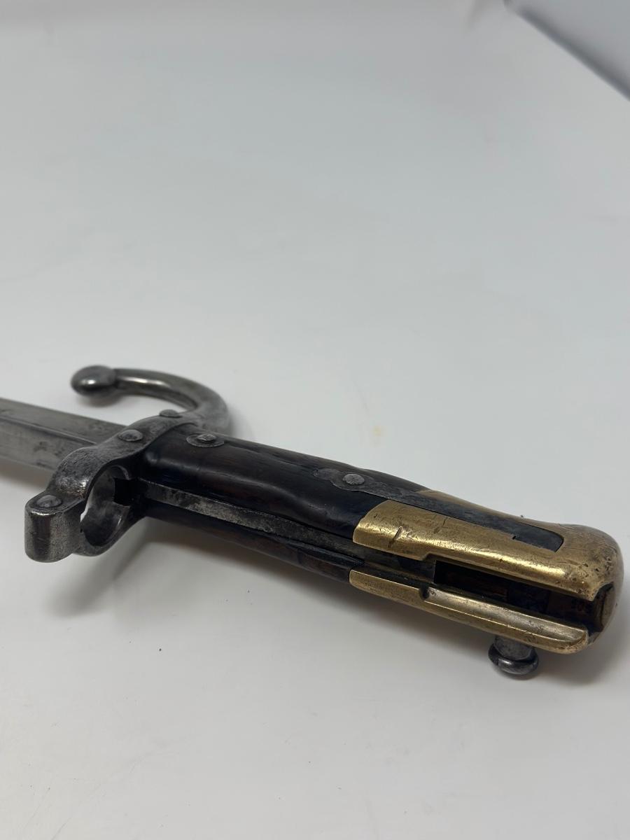 Original antique French Model 1874 “Gras” bayonet, manufactured at the famous St. Etienne arsenal. c. 1877