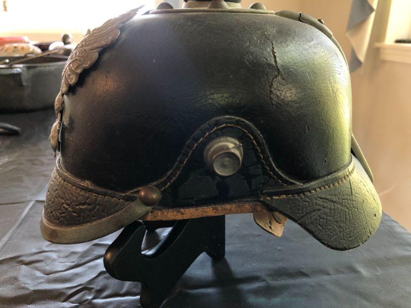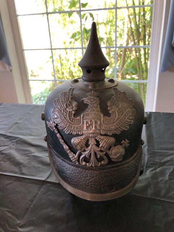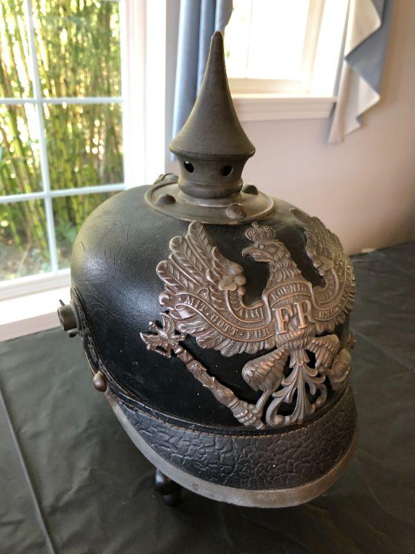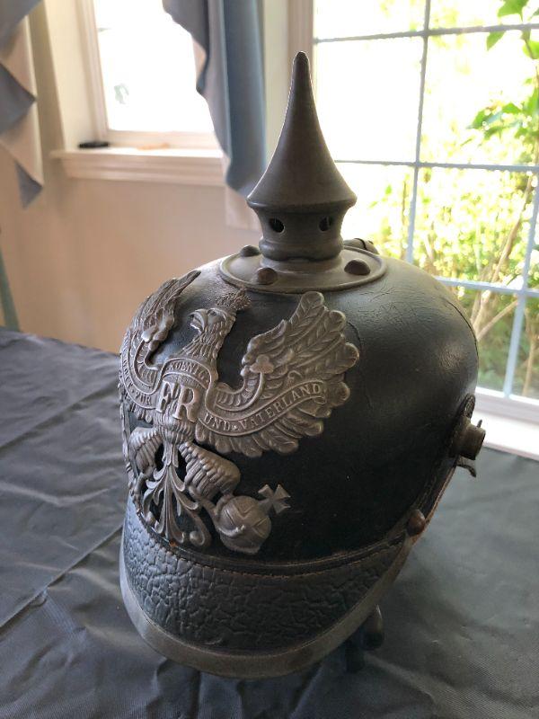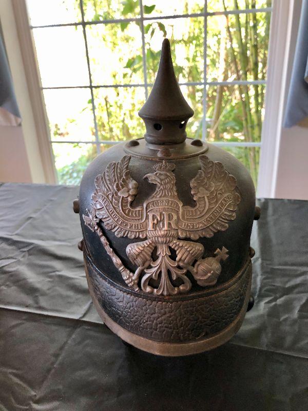 Rare WW1 piece of world history! A WW1 German Prussian infantry pickelhaube helmet, made in Berlin in 1916 (with original leather lining of that era). In very good condition, was kept stored away. Please review images carefully. Belonged to the estate owner’s (she’s aged in her 90s) brother. Estate had several examples of German ephemera and antiques.