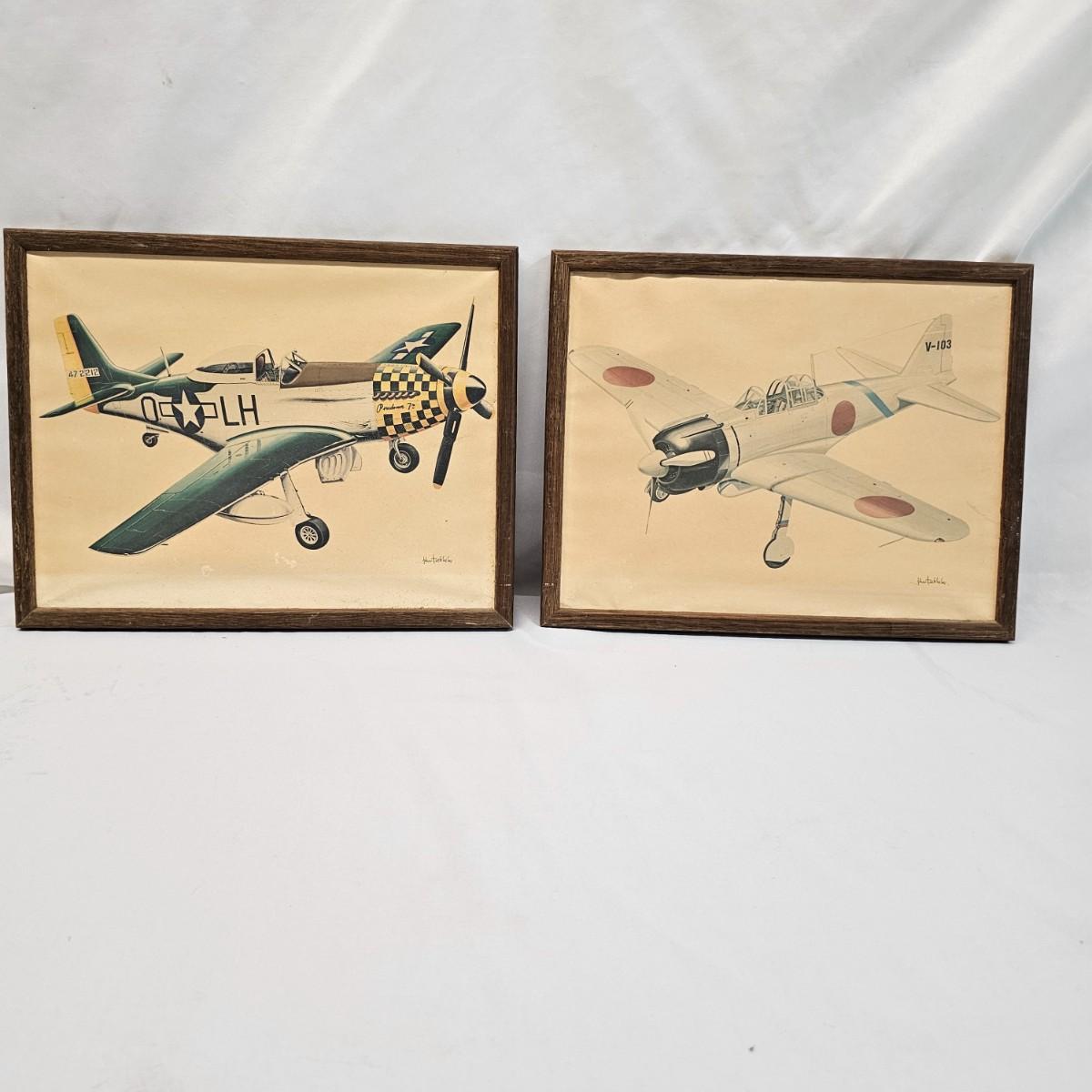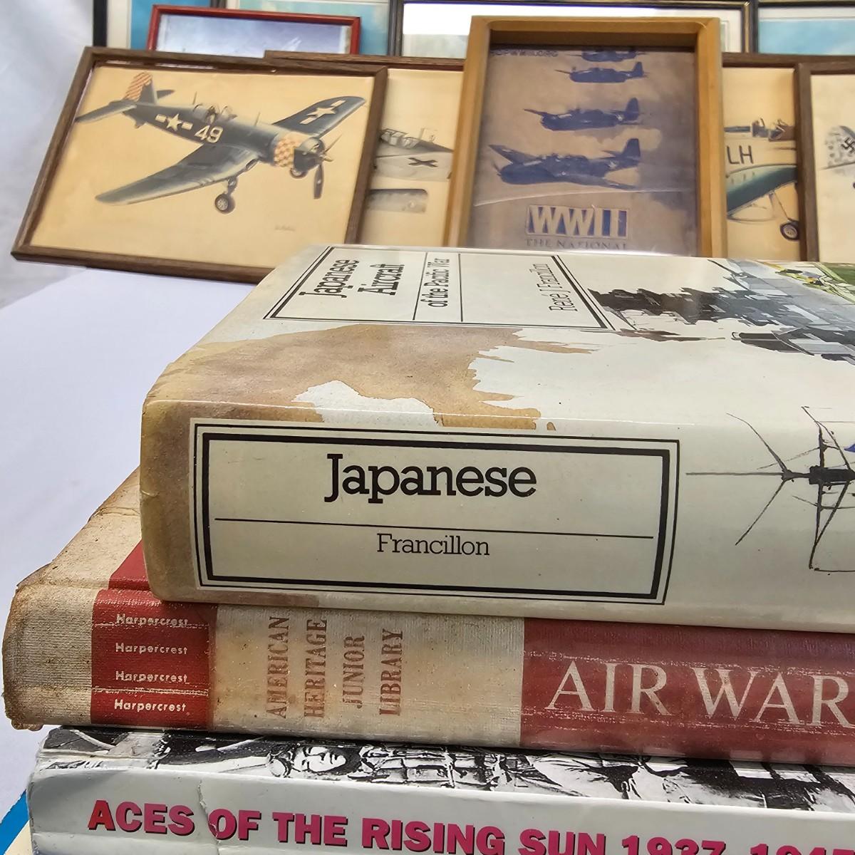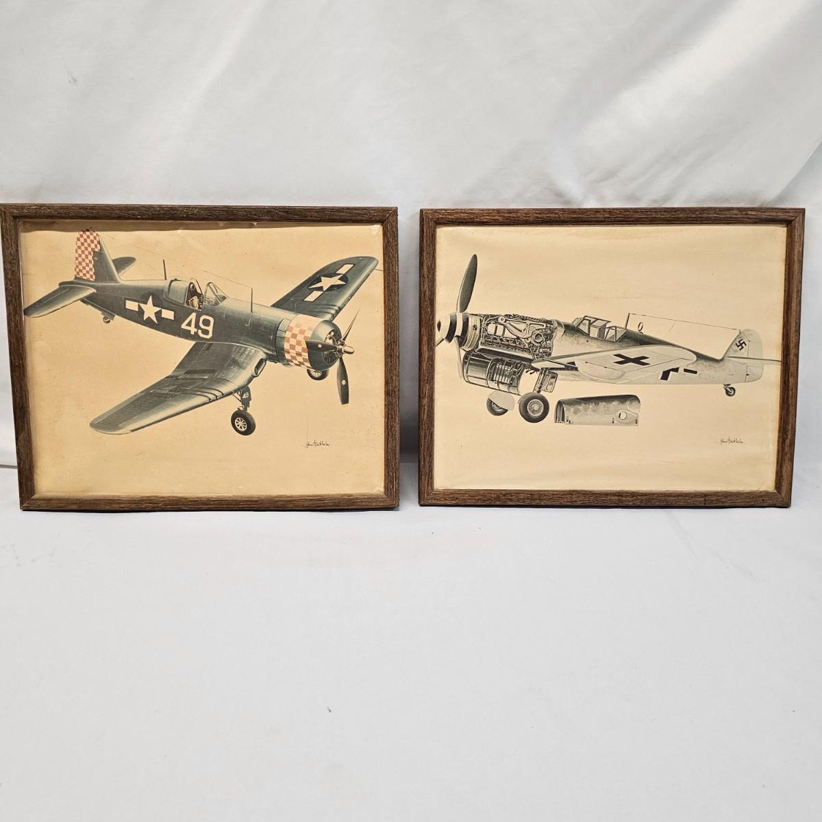 Pictures and stories of the aircrafts and their pilots that fought in World War II. Information about the Allied and German/Japanese flyers plus the equipment they used. Largest print measures 18.5" x 13.5", others are 9.5" x 11.5", 16" x 12" and other. Smaller wooden frame prints have no glass, just prints. 15 prints total. See photos for details. Local pickup only.