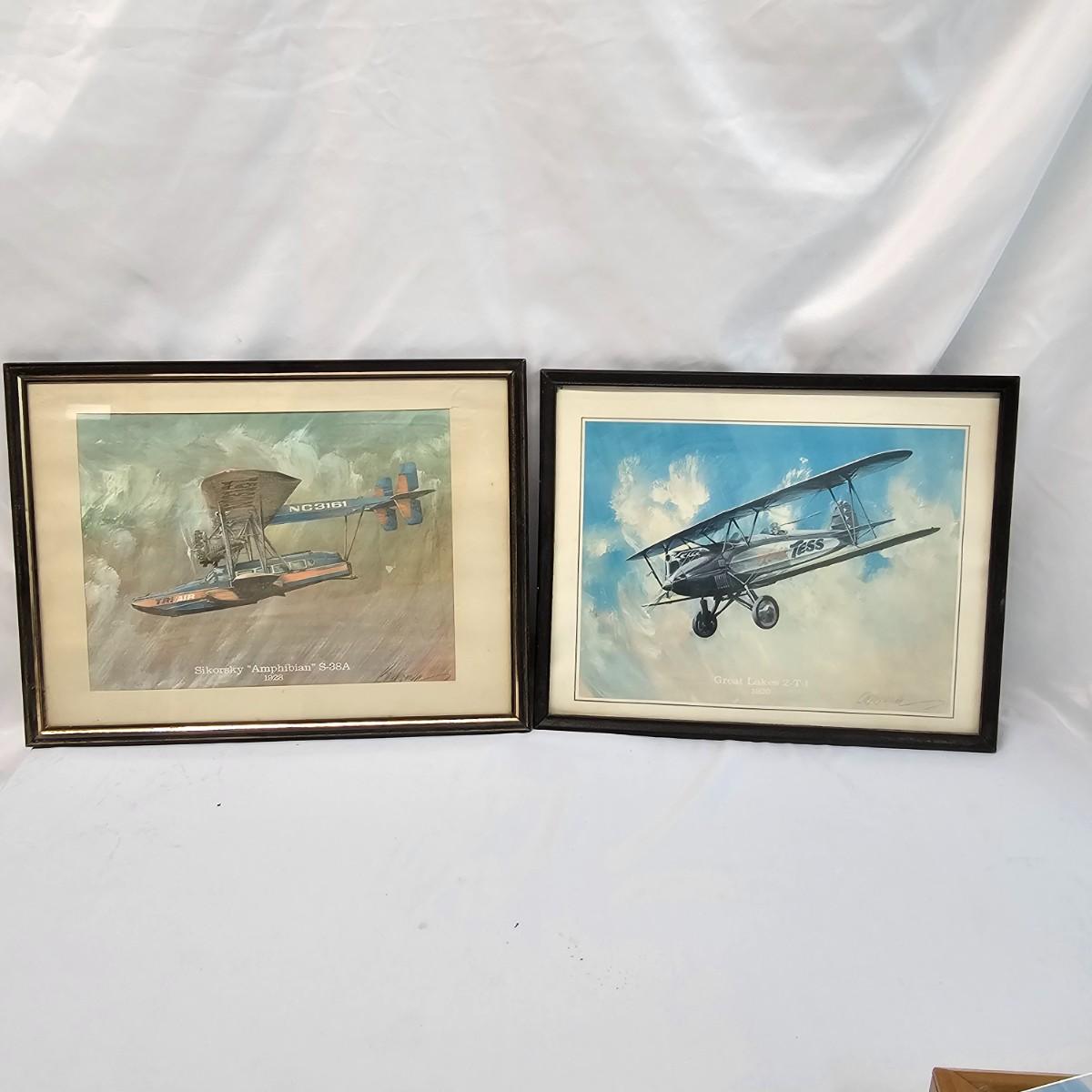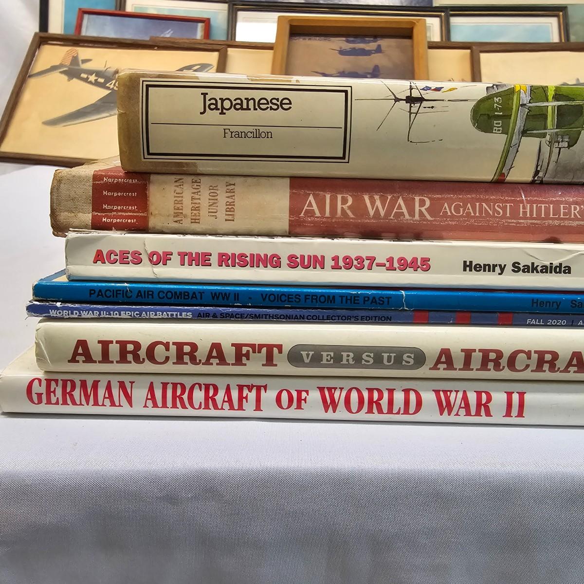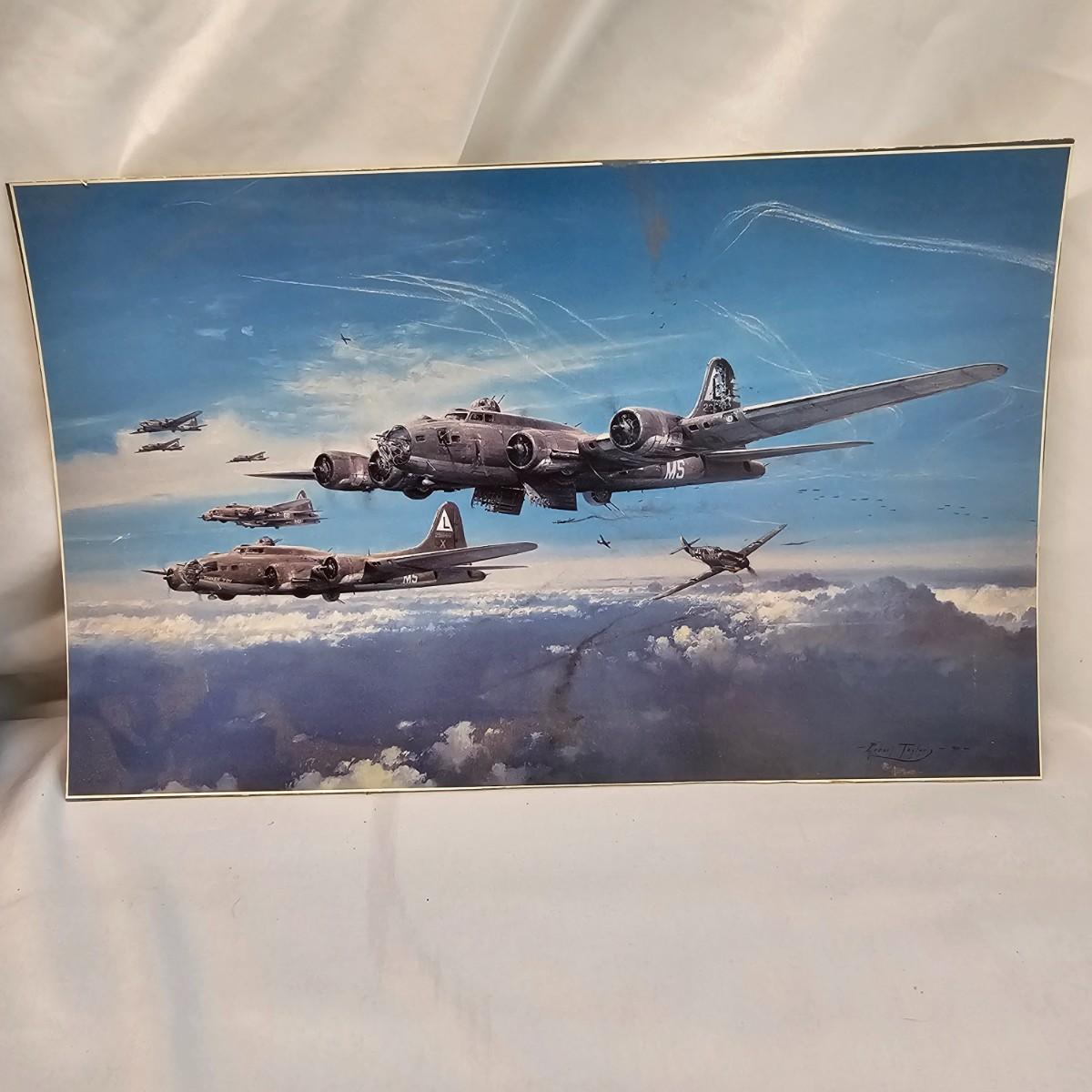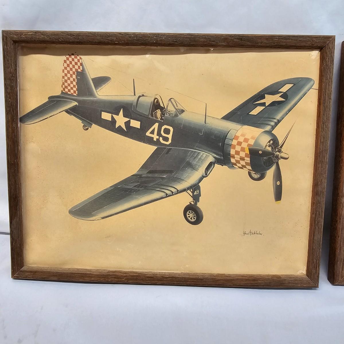 Pictures and stories of the aircrafts and their pilots that fought in World War II. Information about the Allied and German/Japanese flyers plus the equipment they used. Largest print measures 18.5" x 13.5", others are 9.5" x 11.5", 16" x 12" and other. Smaller wooden frame prints have no glass, just prints. 15 prints total. See photos for details. Local pickup only.