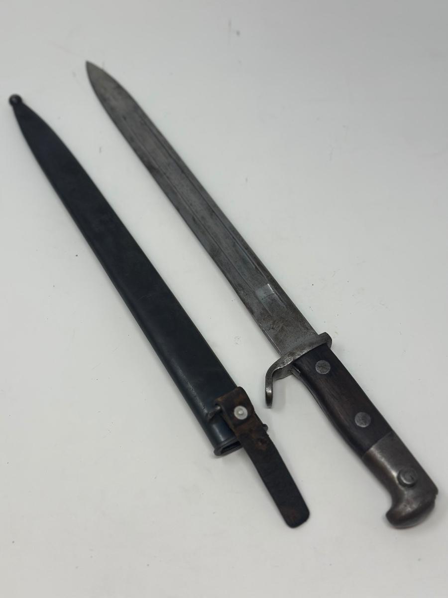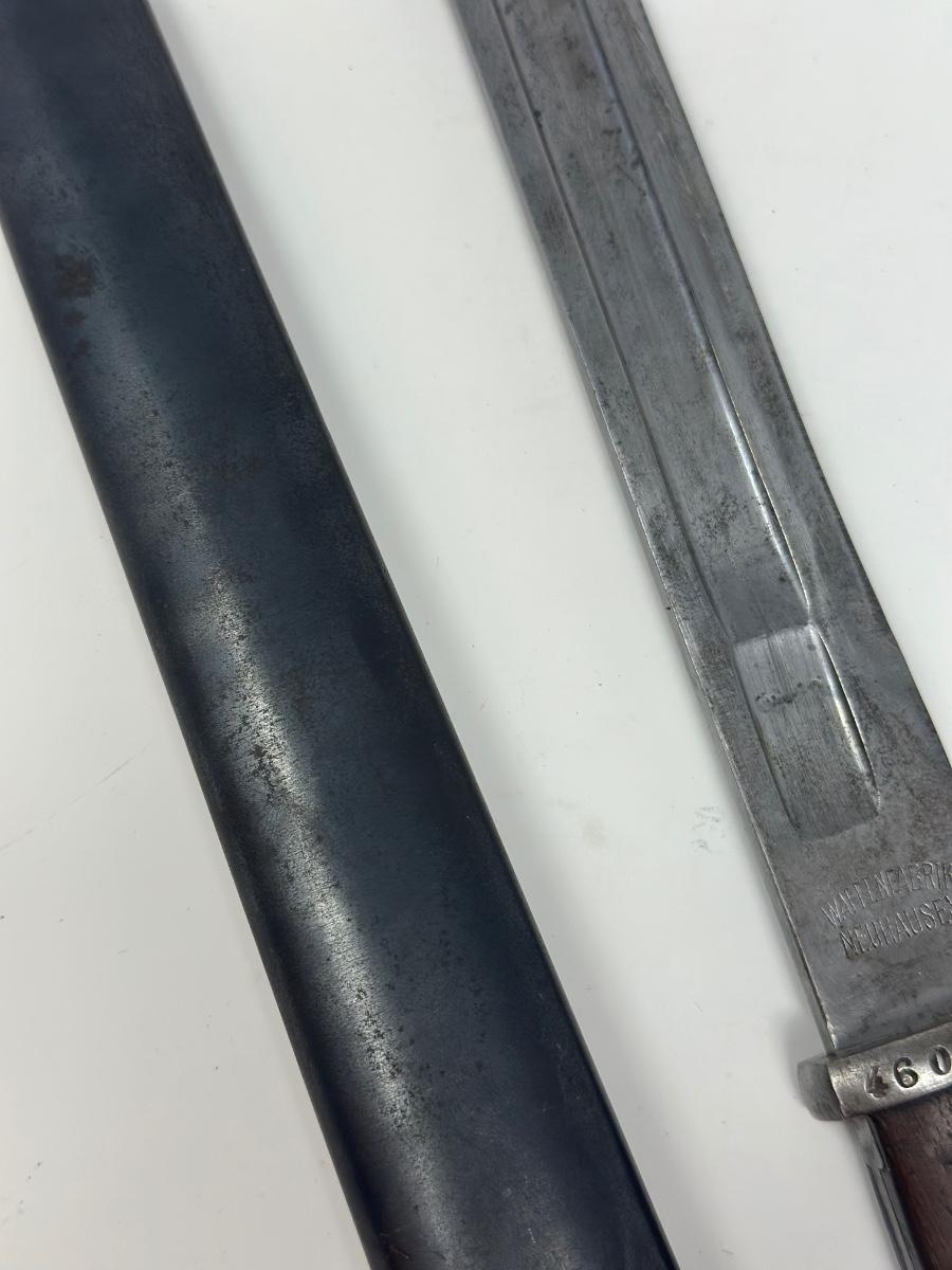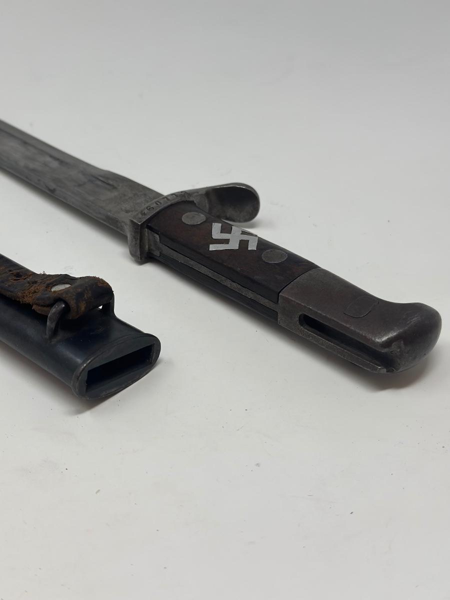 Waffenfabrik Neuhausen Bayonet. Stamped 460779. Inlaid metal swastika in wooden and metal hilt.