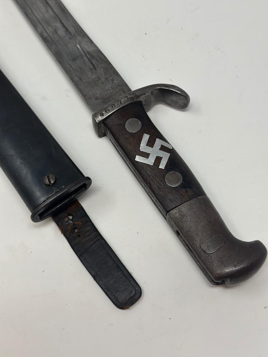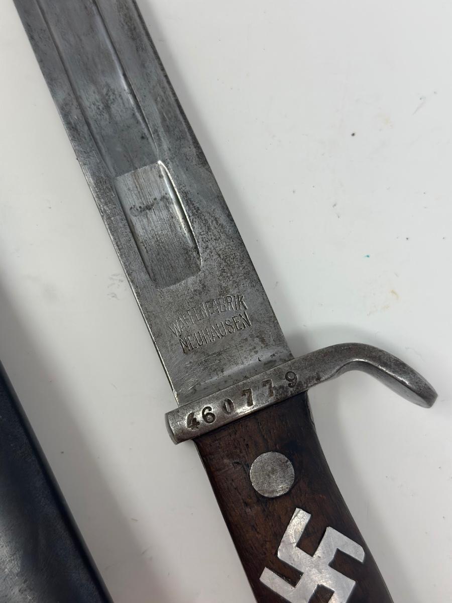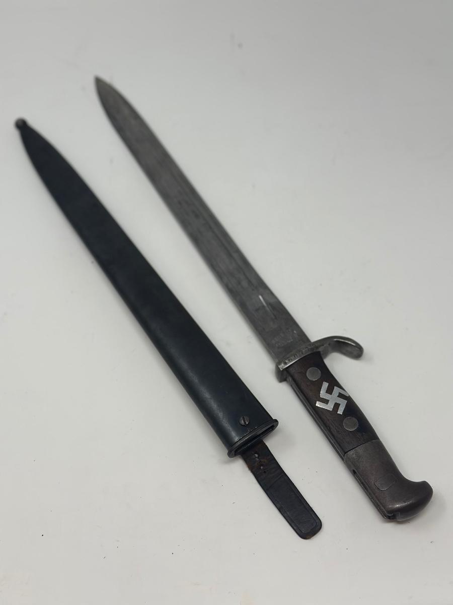 Waffenfabrik Neuhausen Bayonet. Stamped 460779. Inlaid metal swastika in wooden and metal hilt.