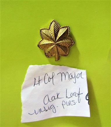 WWII Lt. Col. Major Oak Leaf Insignia Pin 1 1/6” x 1” Gold-Tone Finish