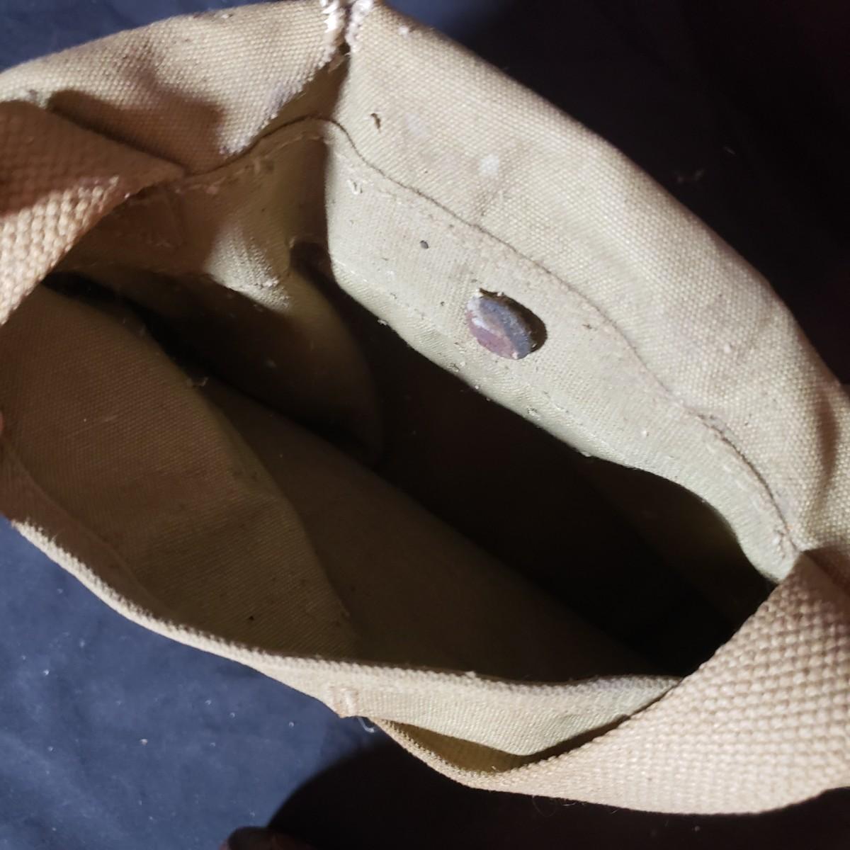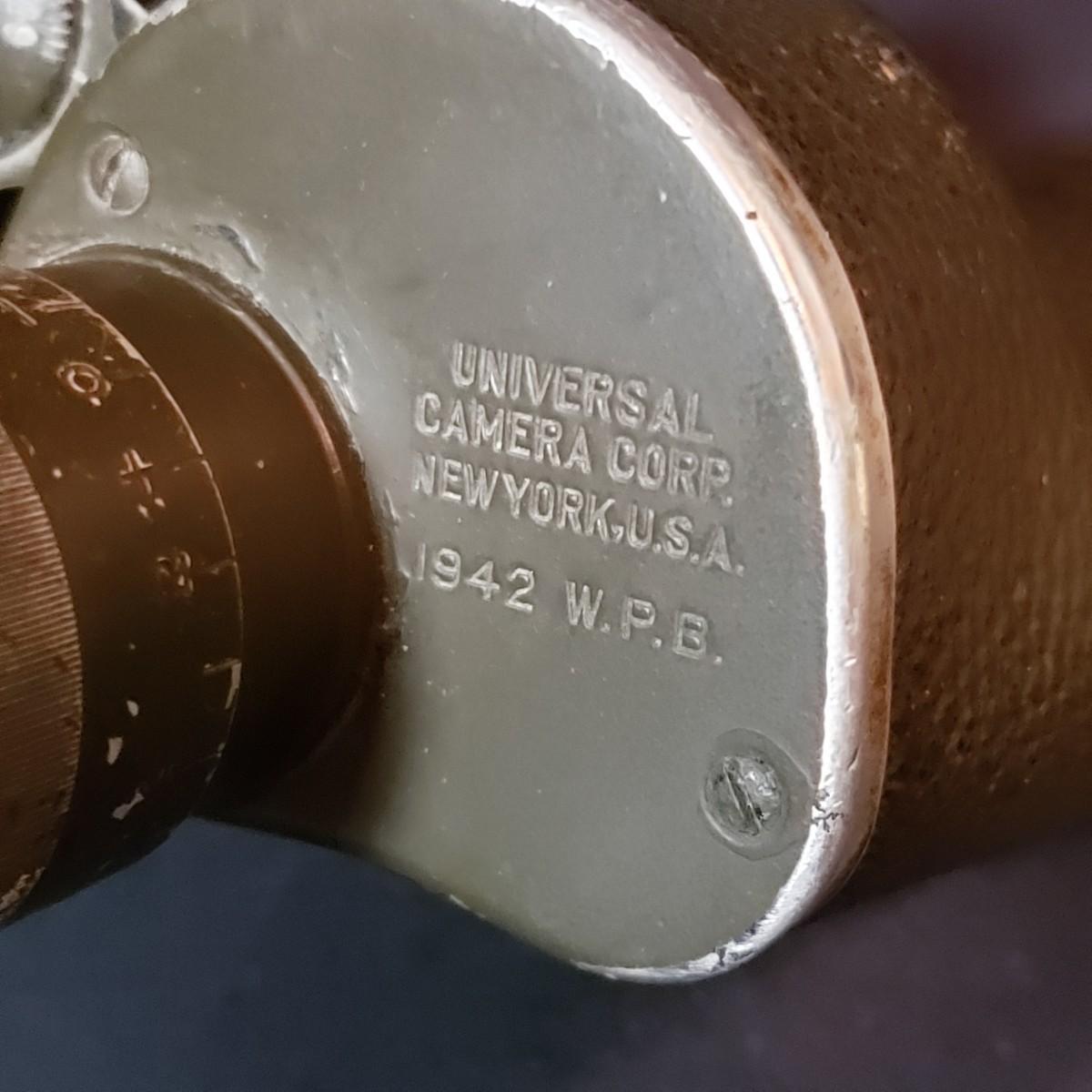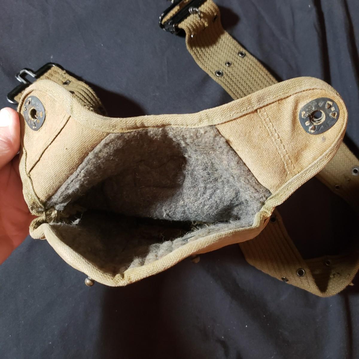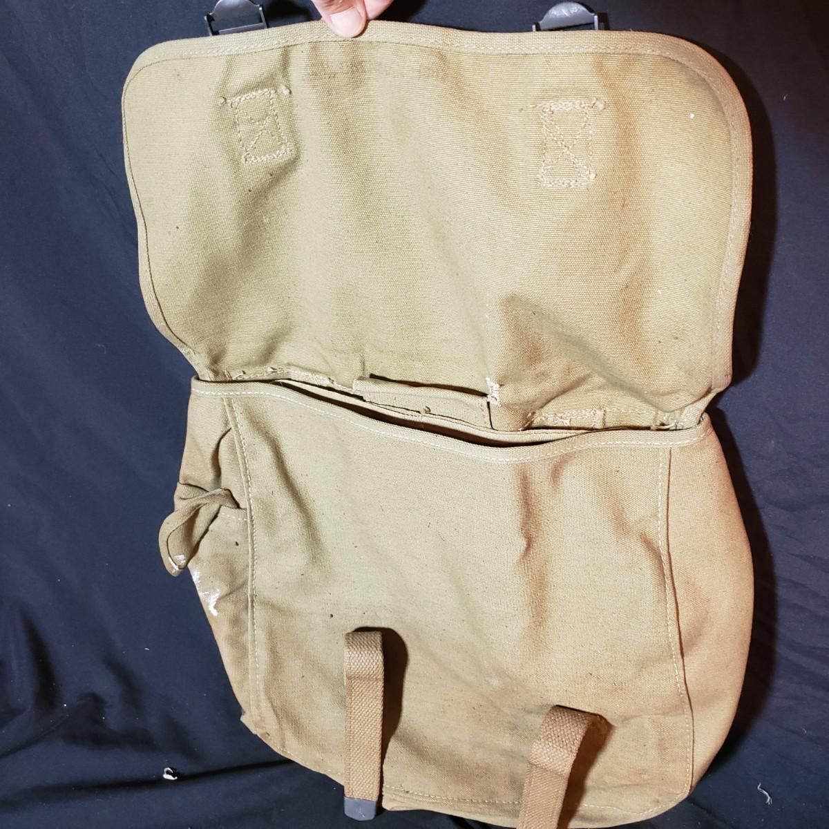 Various items that appear to be WWII military pieces. The two similar musette bags are stamped, but the second one is hard to decipher. See pictures for details. They measure approximately 15" x 5" x 12"H. For their age these appear to be in good condition. The canteen cover is wool lined inside, and the belt still works. The binoculars are made by Universal Camera Corp. Stamped 1942. It comes with a leather carrying case, no strap, but a handle on top.