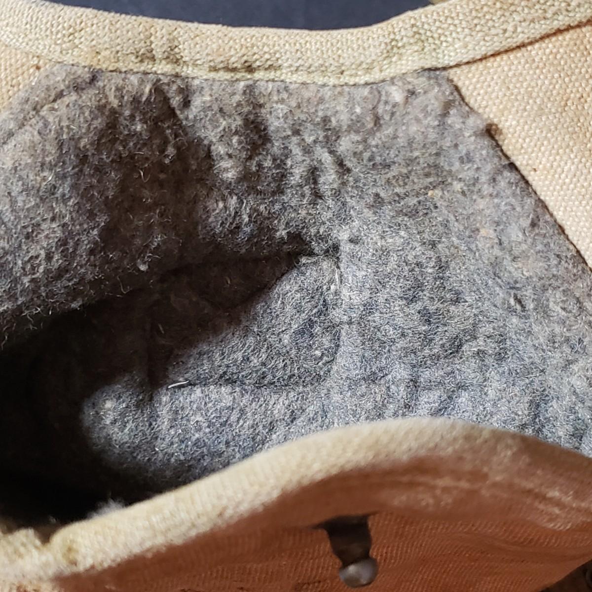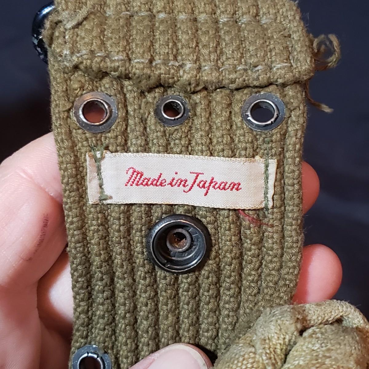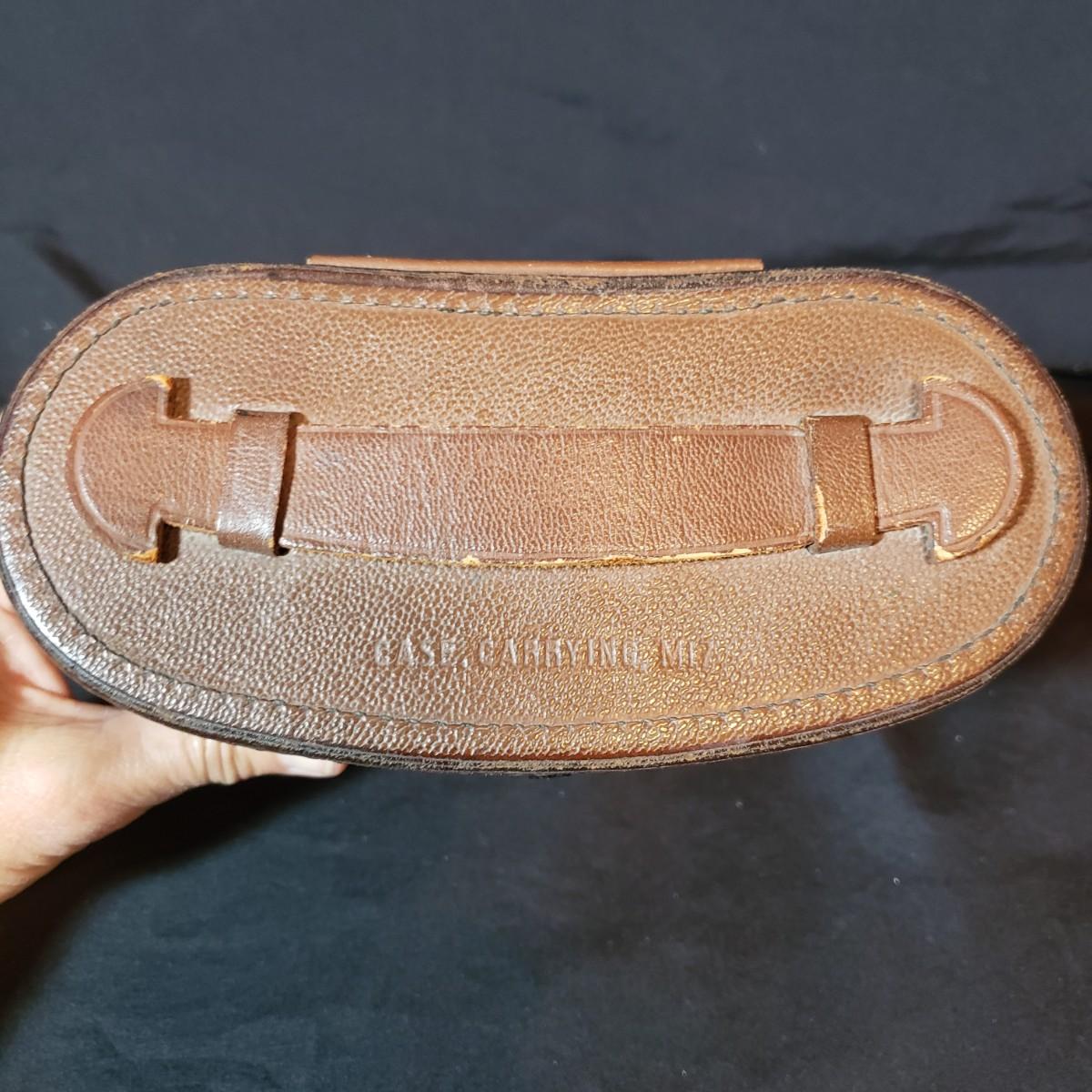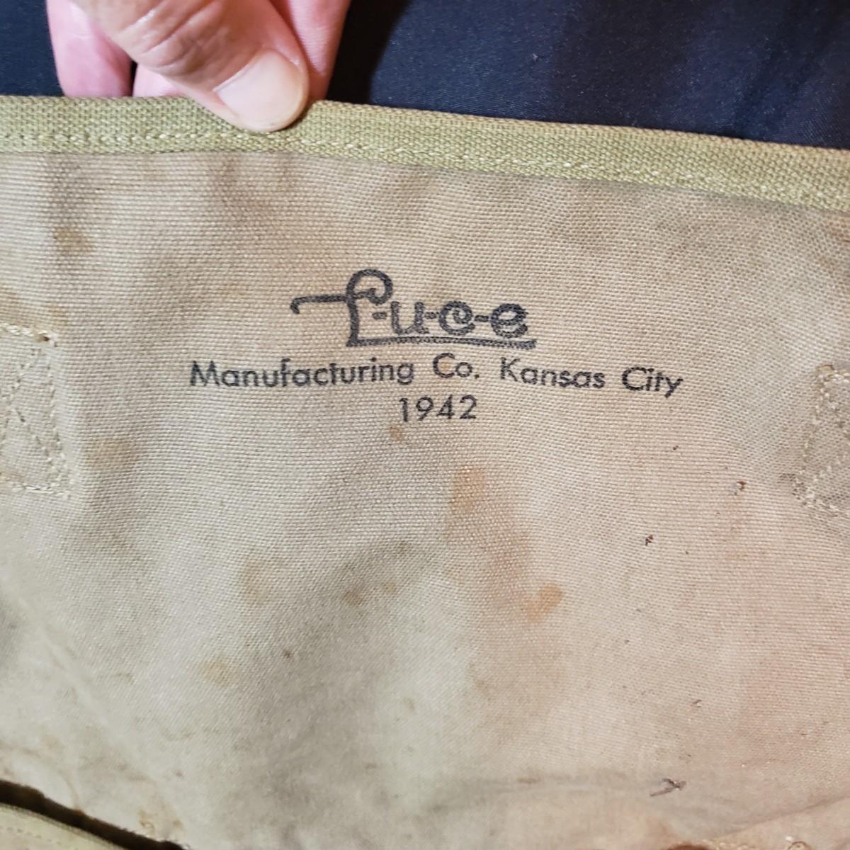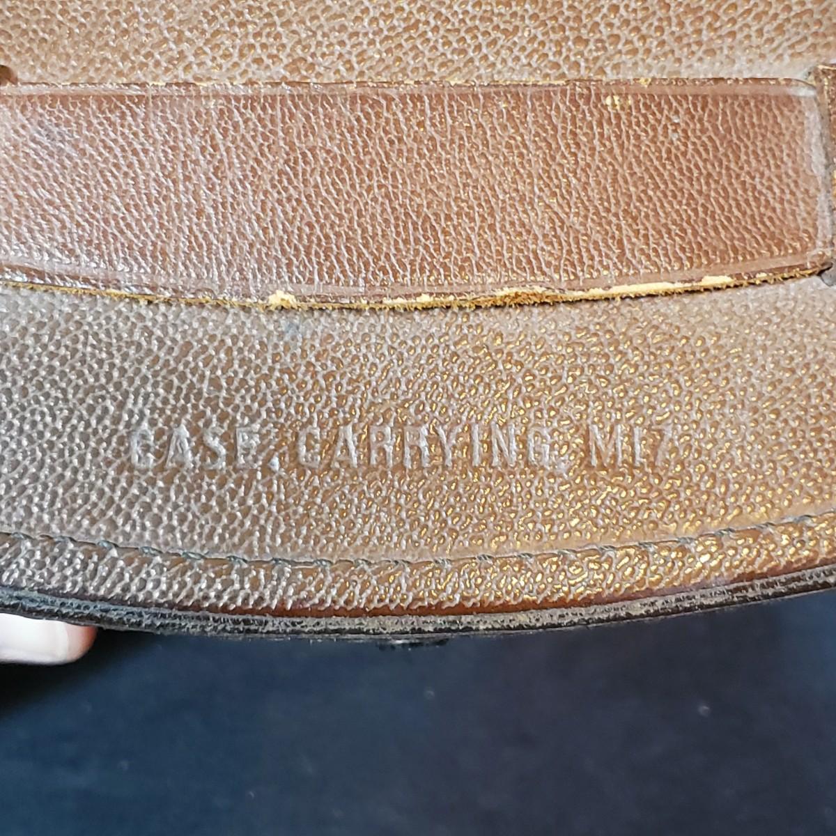 Various items that appear to be WWII military pieces. The two similar musette bags are stamped, but the second one is hard to decipher. See pictures for details. They measure approximately 15" x 5" x 12"H. For their age these appear to be in good condition. The canteen cover is wool lined inside, and the belt still works. The binoculars are made by Universal Camera Corp. Stamped 1942. It comes with a leather carrying case, no strap, but a handle on top.
