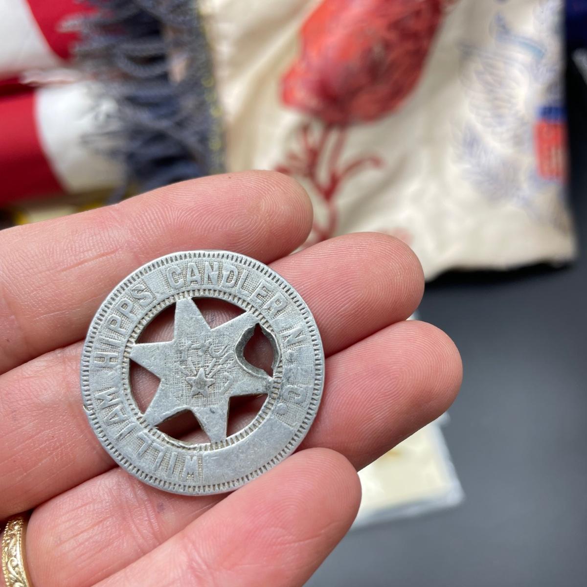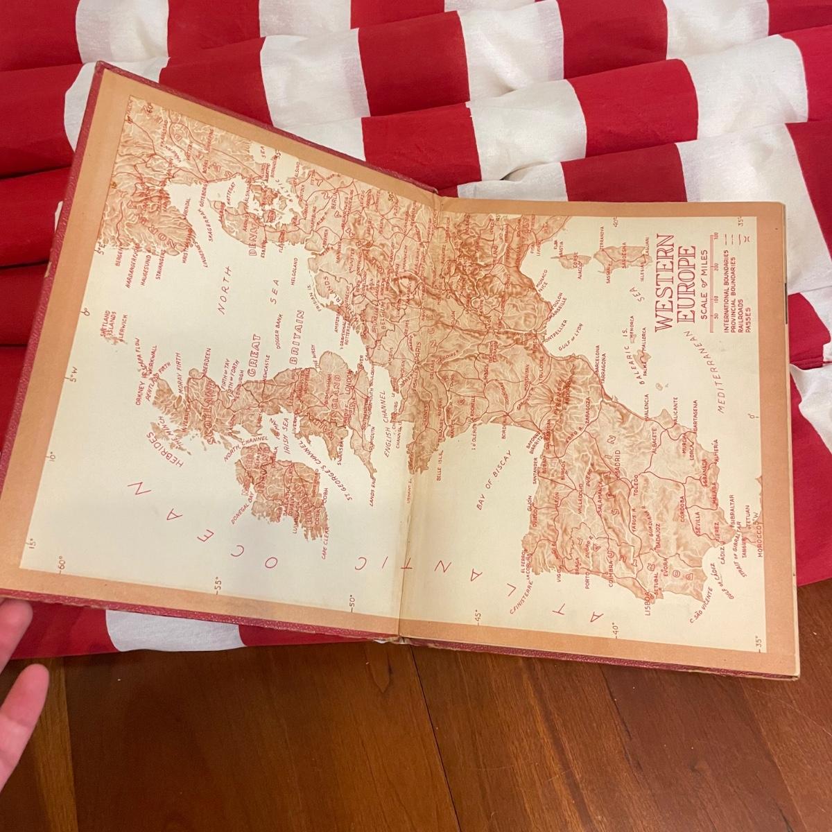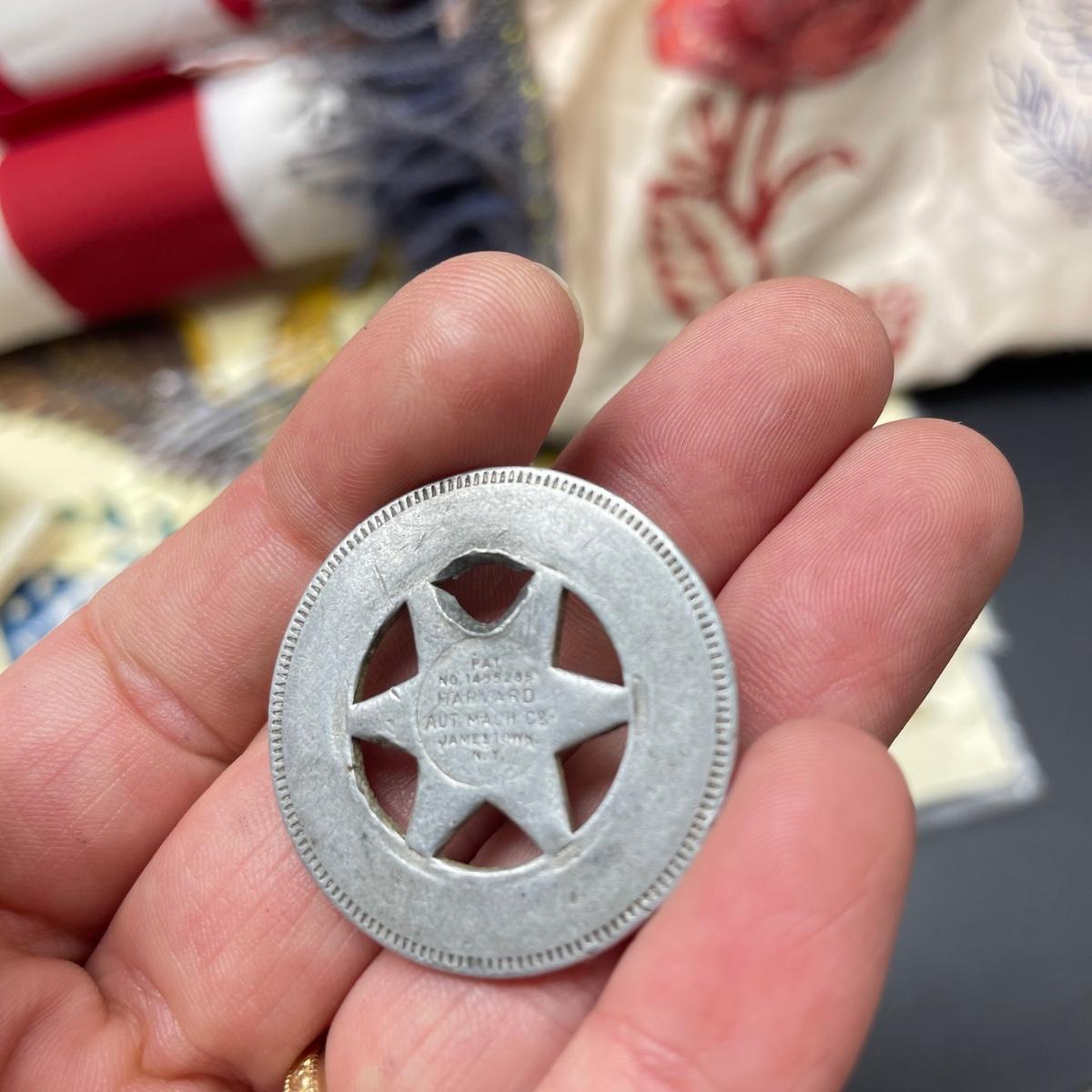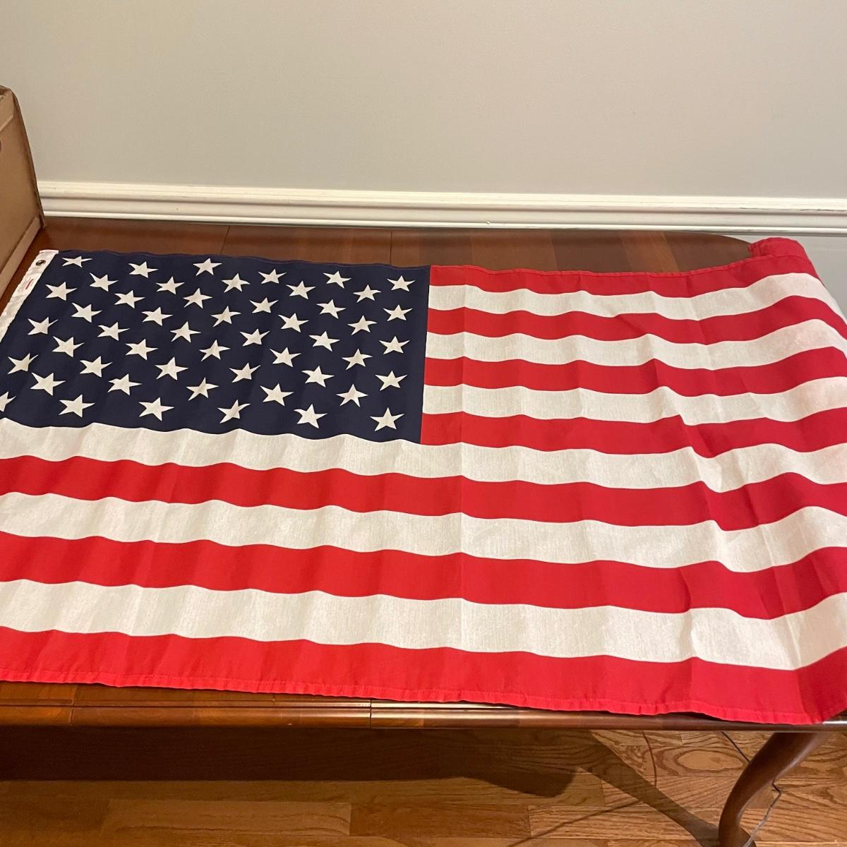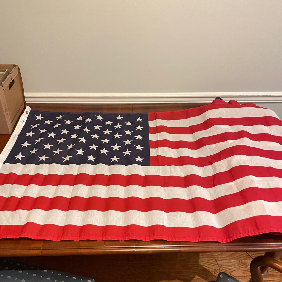 World War II pillowcase with amazing fringe and nice colors with a 1939 Compton’s War Supplement Pictured Encyclopedia. Lot also includes six 3’ x 5’ fifty star flags in amazing shape. American pins and buttons, including one sterling along with vintage decals and flags. See images. Shipping available.