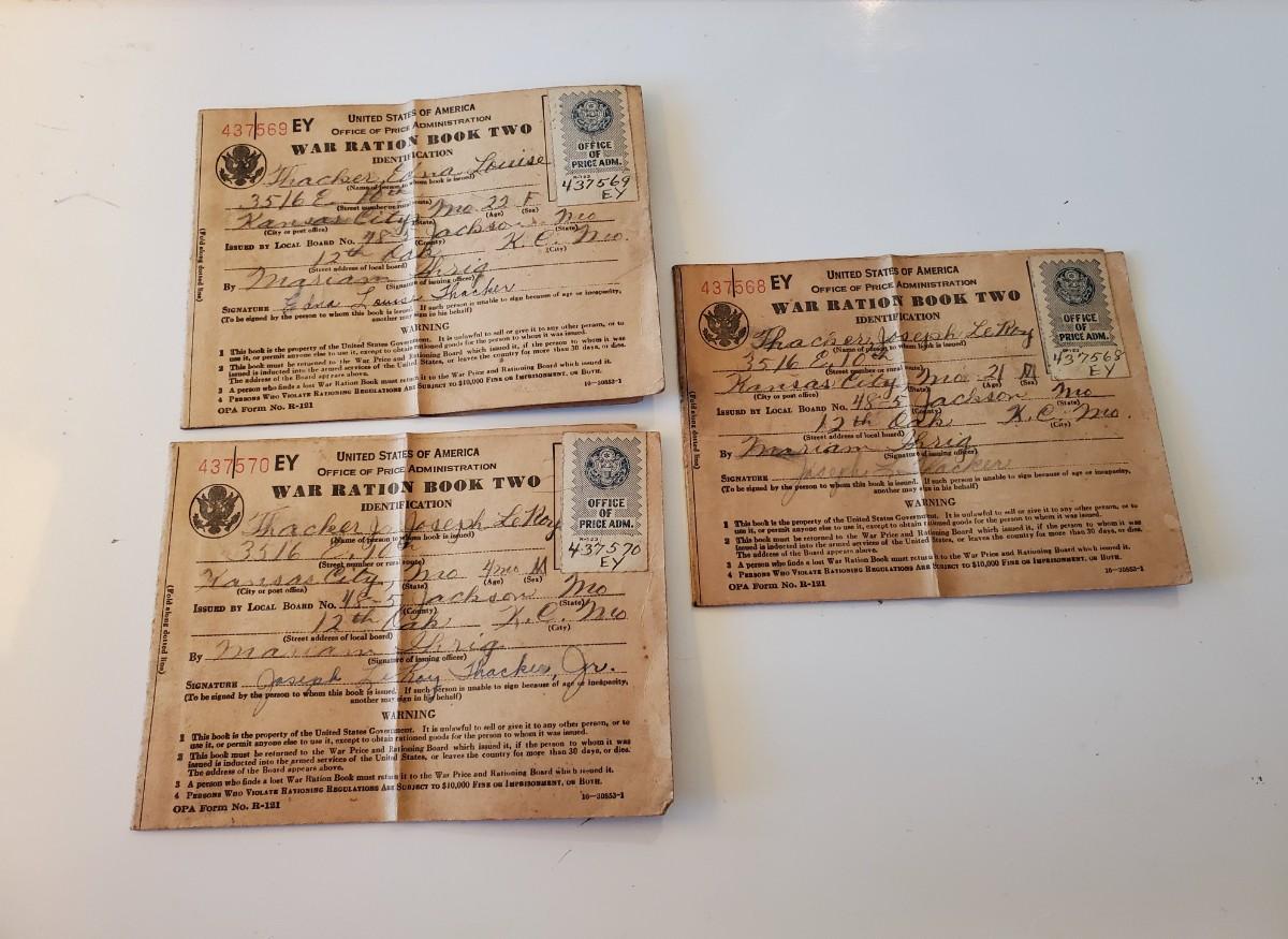 Lot of 3 WWII War Ration Book Two - Empty. Kansas City, MO. Issued in January 1943.