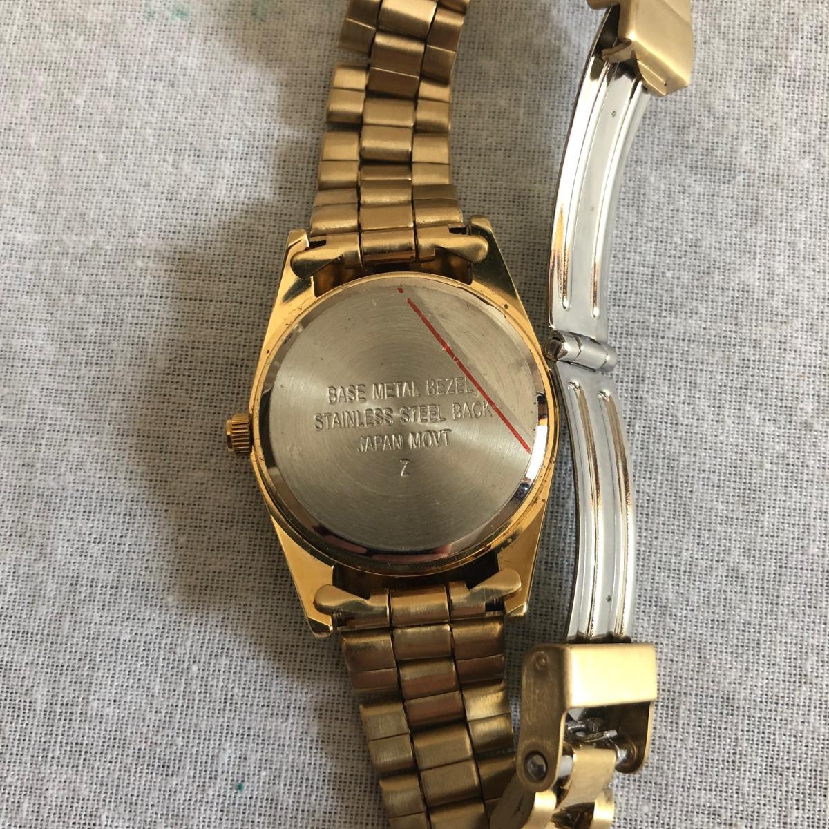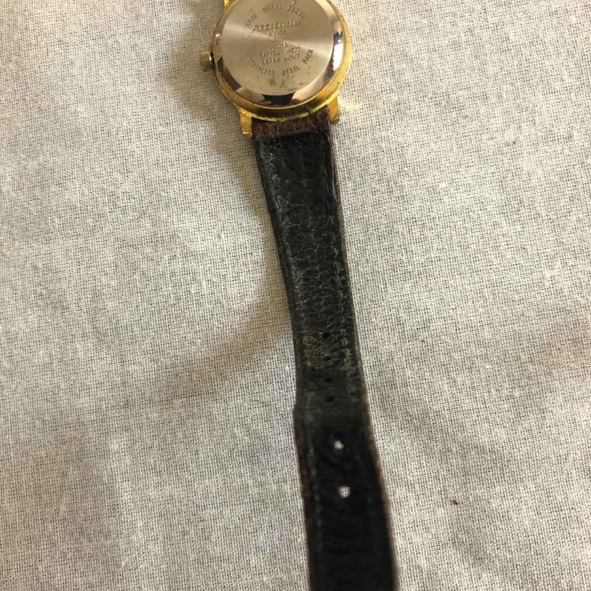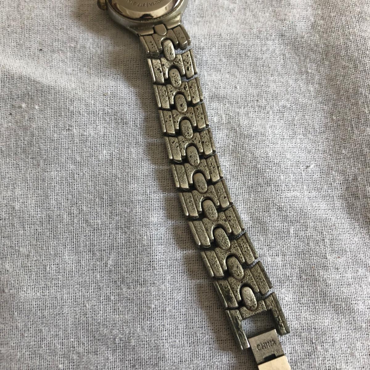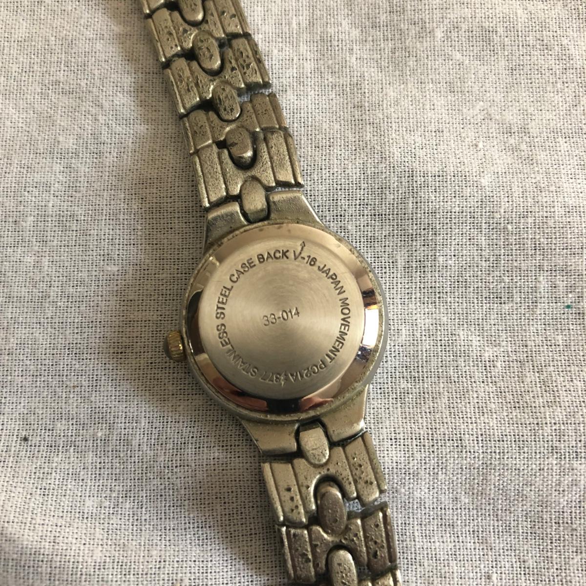 The silver tone watch shows wear to the metal on the back of the band and the leather band watches show wear to the leather. The faces of the silver tone and leather watches do show some surface scratches to the glass. The gold tone Premier Designs watch does show some discoloration in one of the faceted gems that looks like it could be cleaned off. Shipping available.