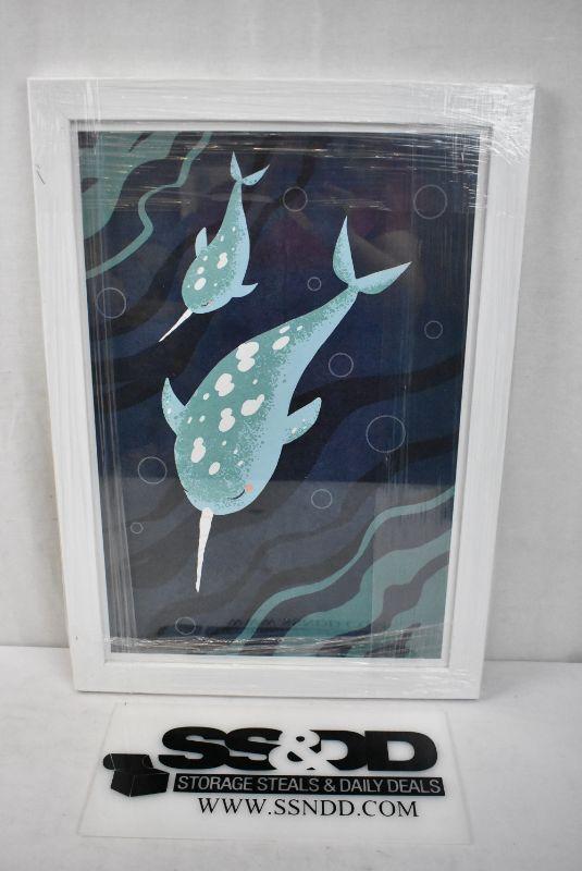 Wynwood Studio Narwhals Animals Framed Wall Art Print - Blue, White