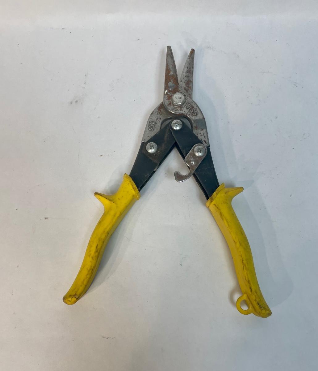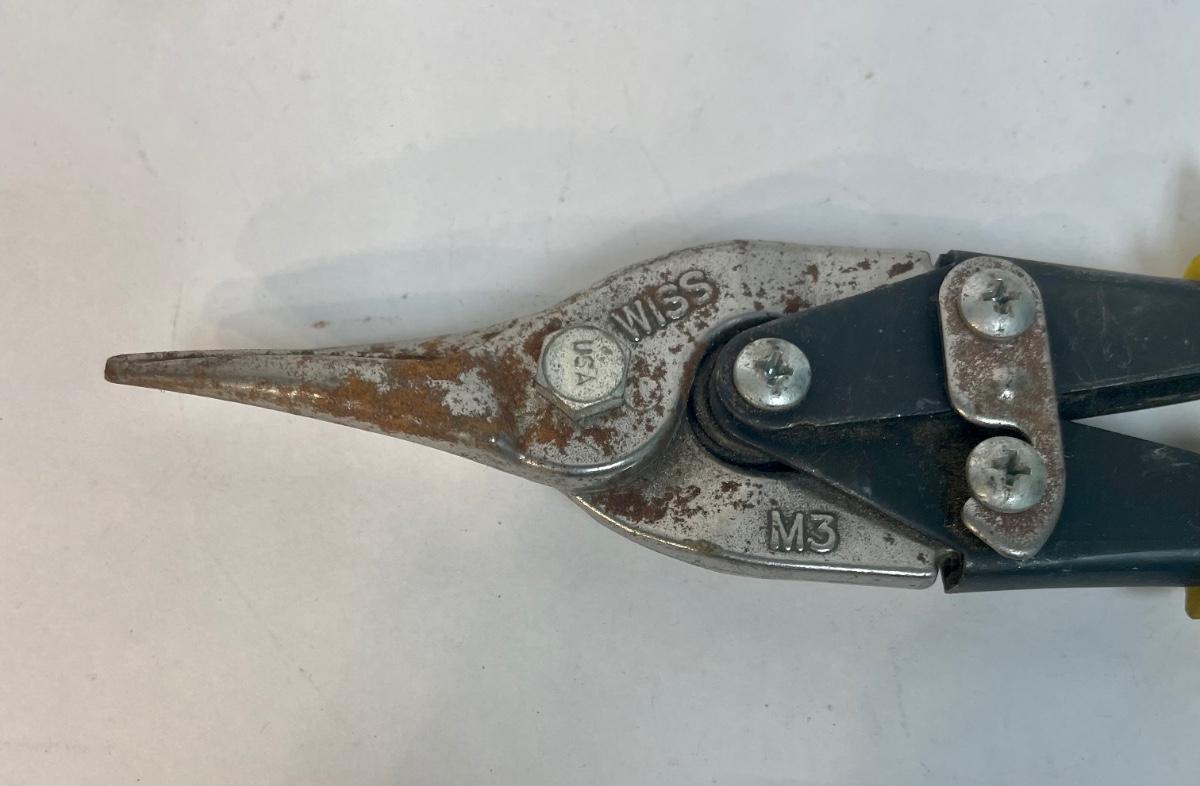 Wiss 9 3/4" Yellow Handle Aviation Snips. Small amount of surface rust, but otherwise in good used condition.