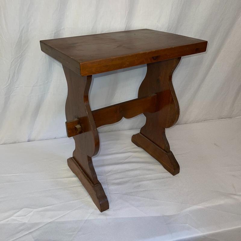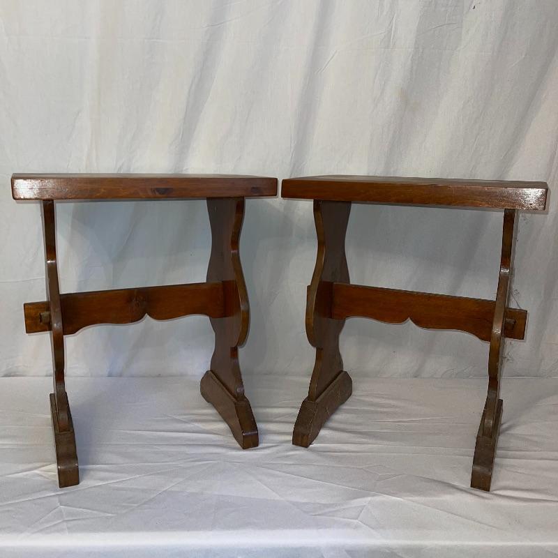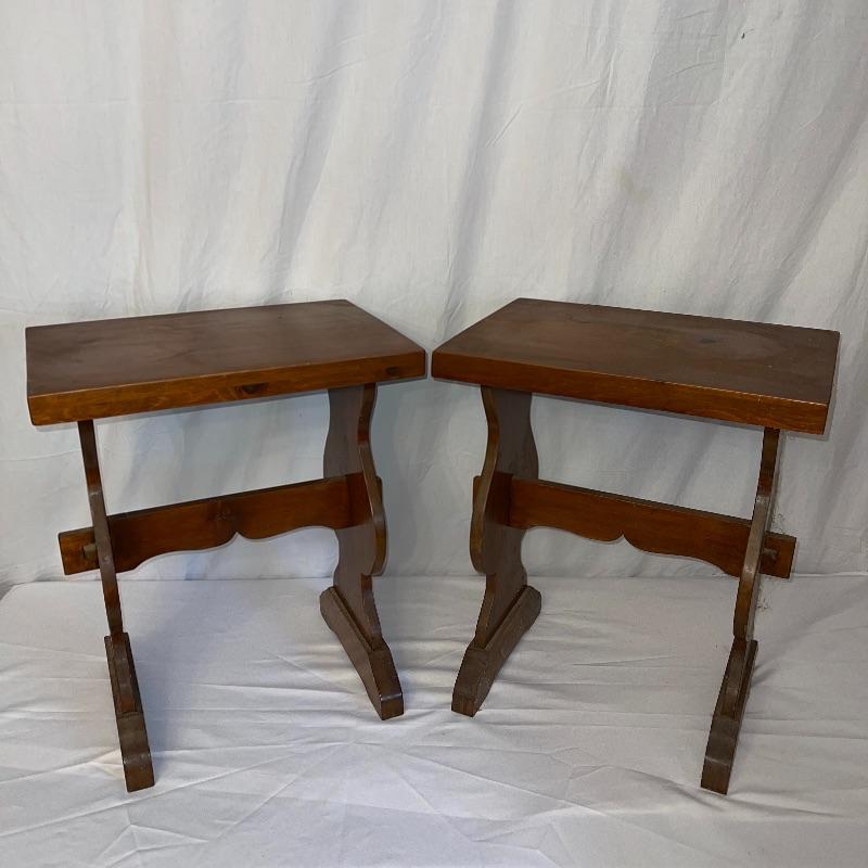 These two wooden end tables are 20 inches long, 14 inches wide, and 2 feet tall. A quick dusting will make these great side tables/ desks/ etc. Likely Handmade.