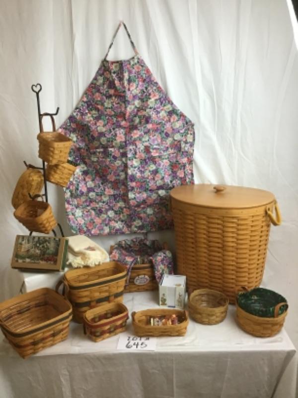 X - 645. Longaberger Collection of leather strap side handles Baskets