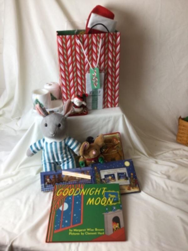 Goodnight Moon book, Holiday frame and photo album set, Plush animal figures, Crayons, Beanie Babies and more. Longaberger Dresden Tour II 1997 edition,Longaberger Parsley booking basket and Longaberger Tarragon Basket