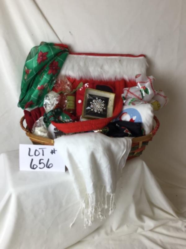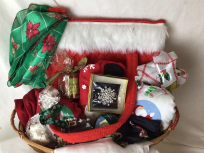 Da rice Santa Shoulder bag, Santa shirt size XL, Snowflake pin, Snowflake bath fizzies,three silk scarves , snowman shirt size XL, candles and more