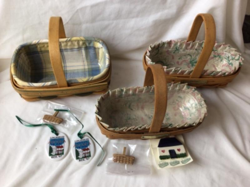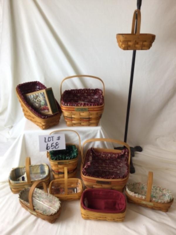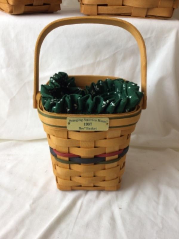 Longaberger Bee Baskets including two 1996 Light The Fire Within, one Imagine,2001 Achieve,Believe and one 1997 Bringing America Home. Two Longaberger Hostess Appreciation Baskets. One Sleighbell basket and more