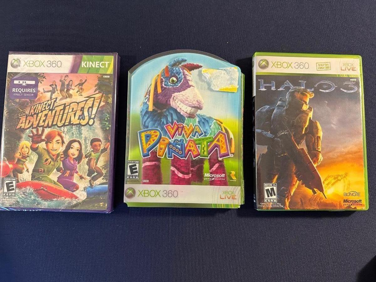 KINECT ADVENTURES, VIVA PINATA, HALO 3 X BOX 360 GAMES AS PICTURED