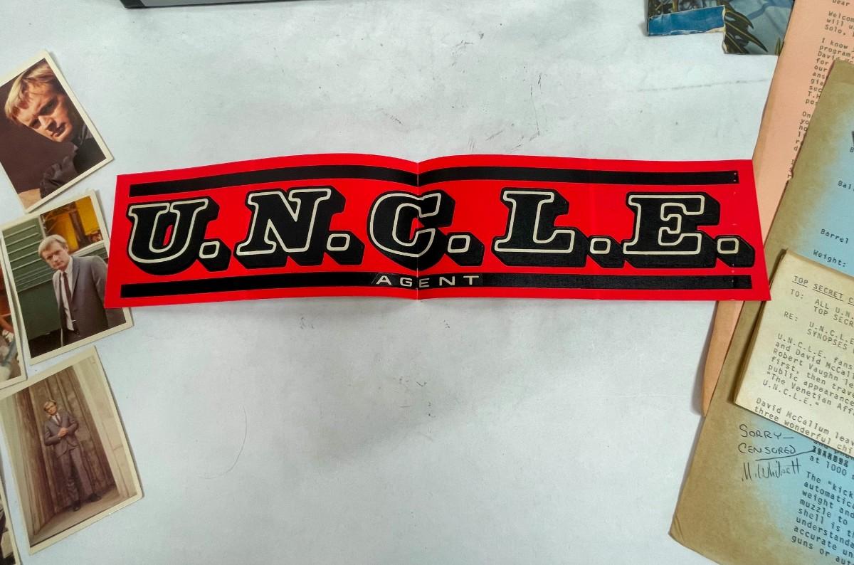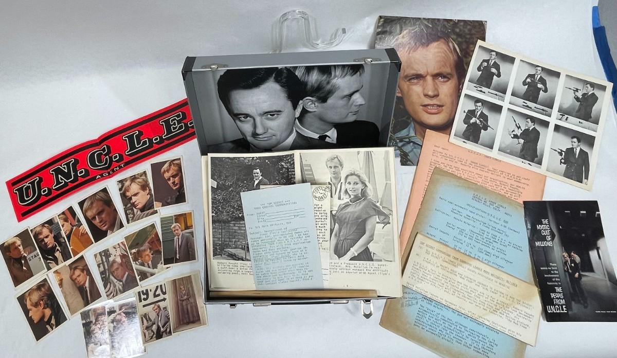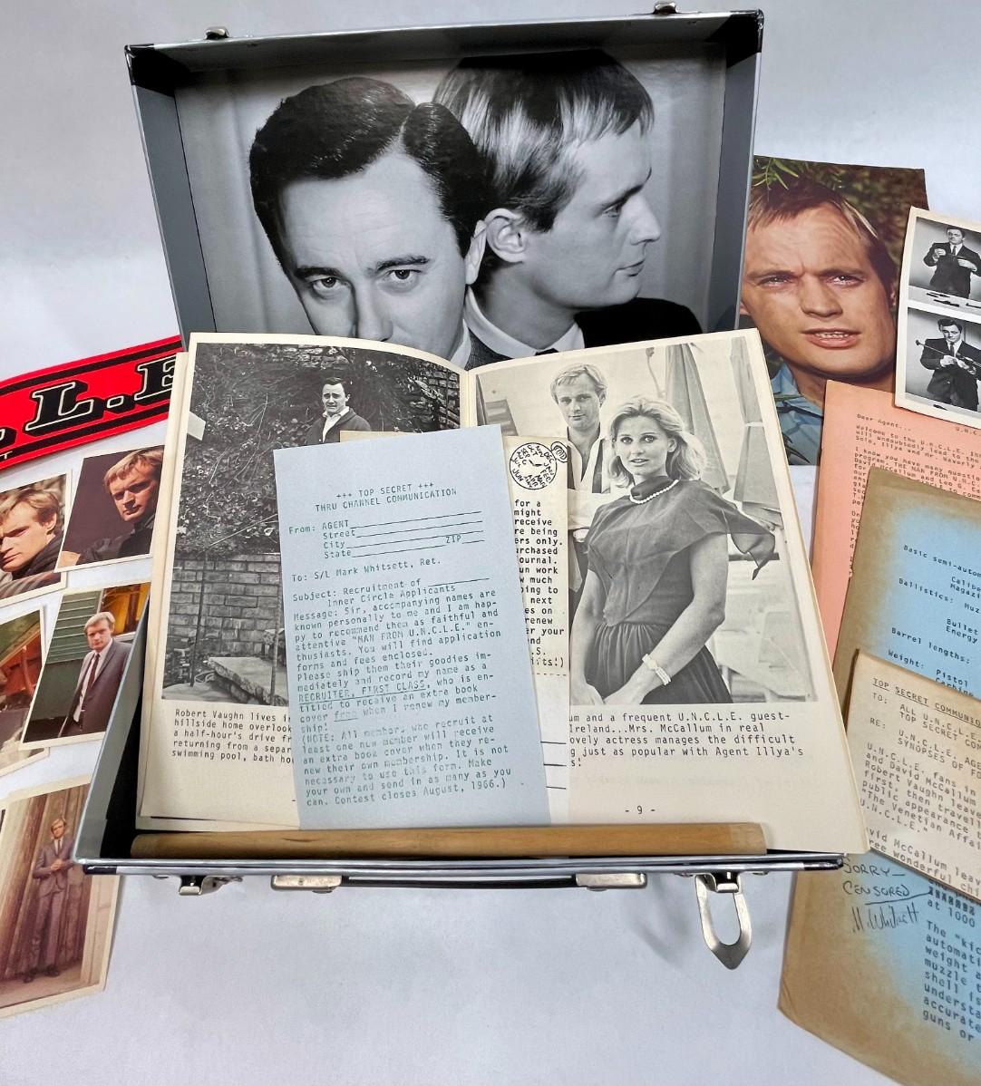 Man From U.N.C.L.E. Memorabilia Lot A bumper sticker, photos, briefcase, fan club, cards