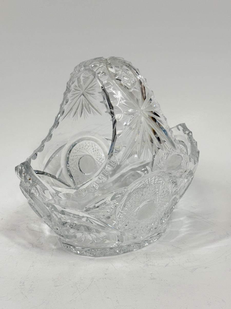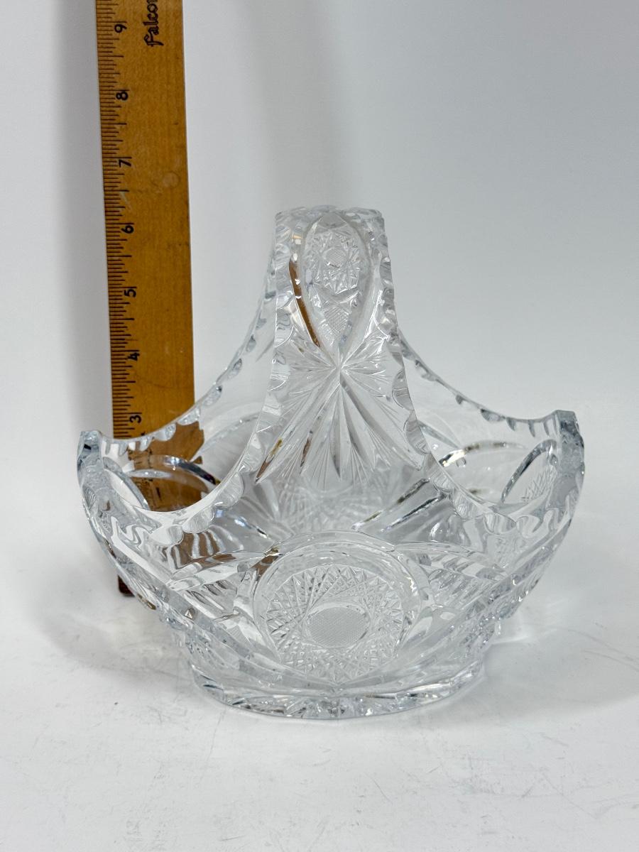 Vintage Cut Glass Crystal Basket Candy Fruit Bowl