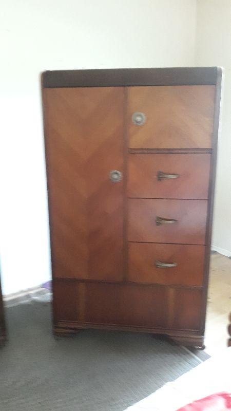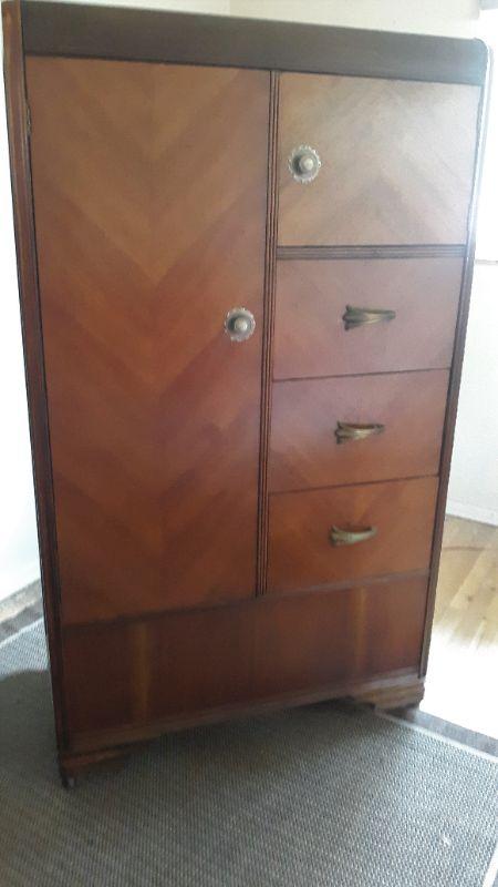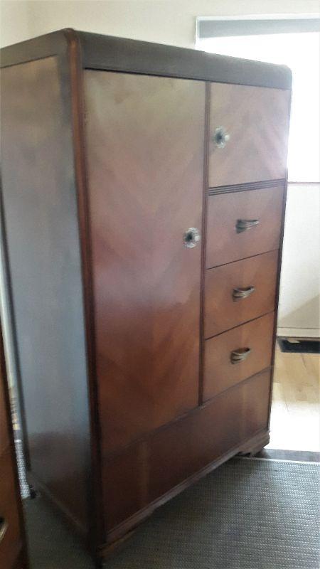 MEASURES 36"X20"X62" GREAT CONDITION WITH LOTS OF STORAGE SPACE, HAS ORIGINAL CASTORS, NOT HEAVY BUT SOLID. A BEAUTIFUL PIECE (MATCHING CHEST OF DRAWERS IN LOT 5
