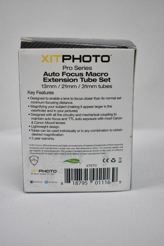 XIT XTEC Auto Focus Macro Extension Tube Set for Canon SLR Cameras (Black) - New