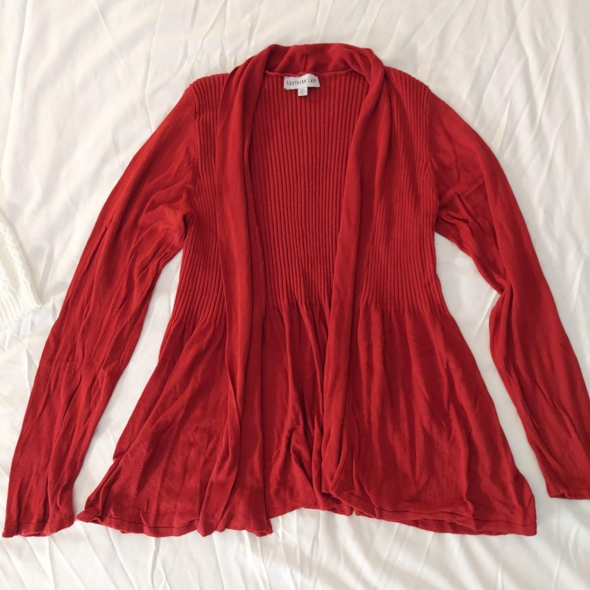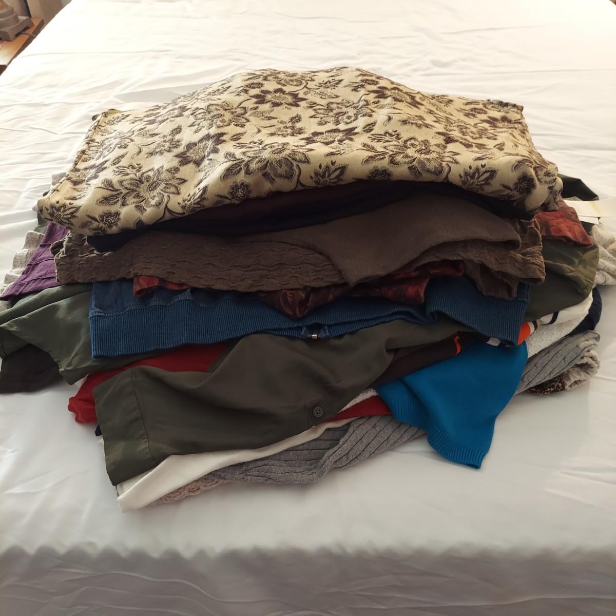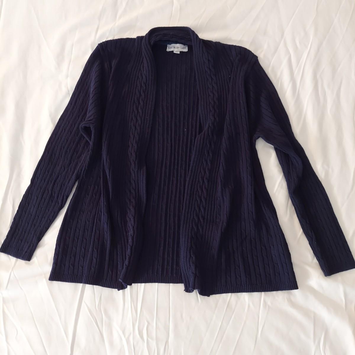 Lot includes 10+ lightweight cardigans and some tops in size Extra Large. Plus a handful of two-piece sets. Brands include Lauren Ralph Lauren, Sonoma, Alfred Dunner and more. Some items are new with tags. Please see photos for details. Shipping available