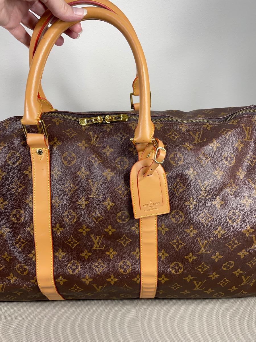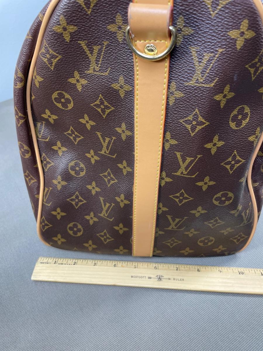 Huge weekender bag. 23” wide by 14” high by 12” deep. Holds a lot! Excellent condition. Last photo for perspective.