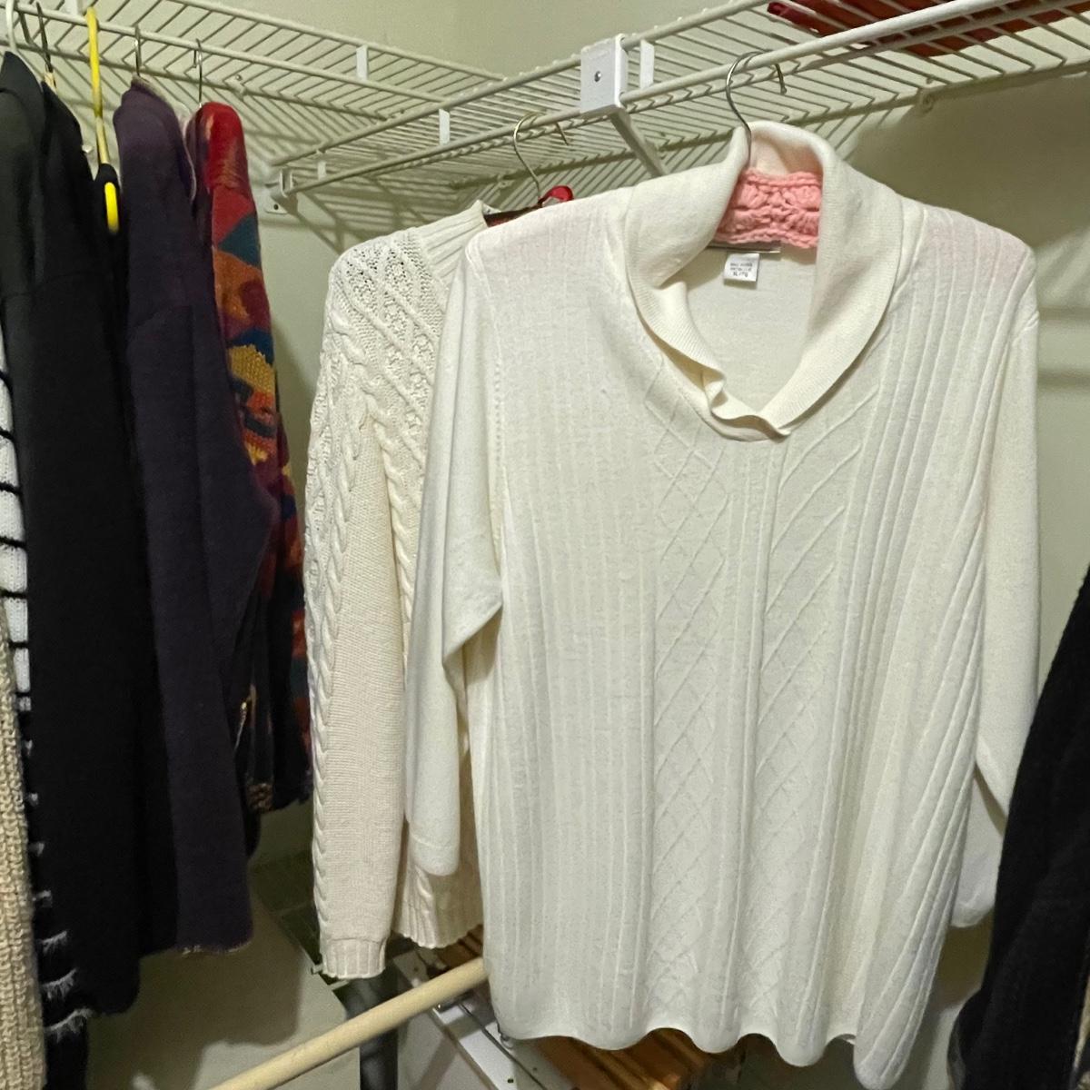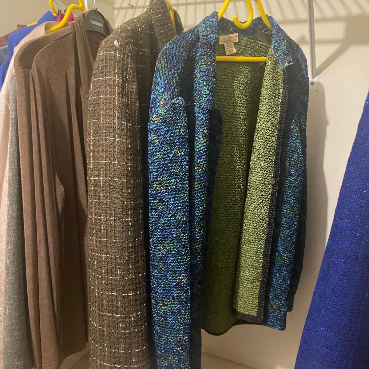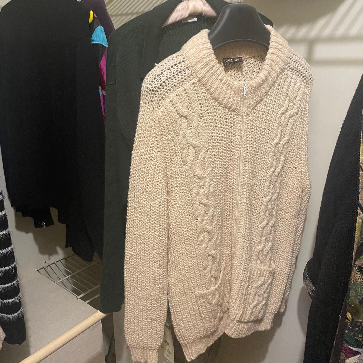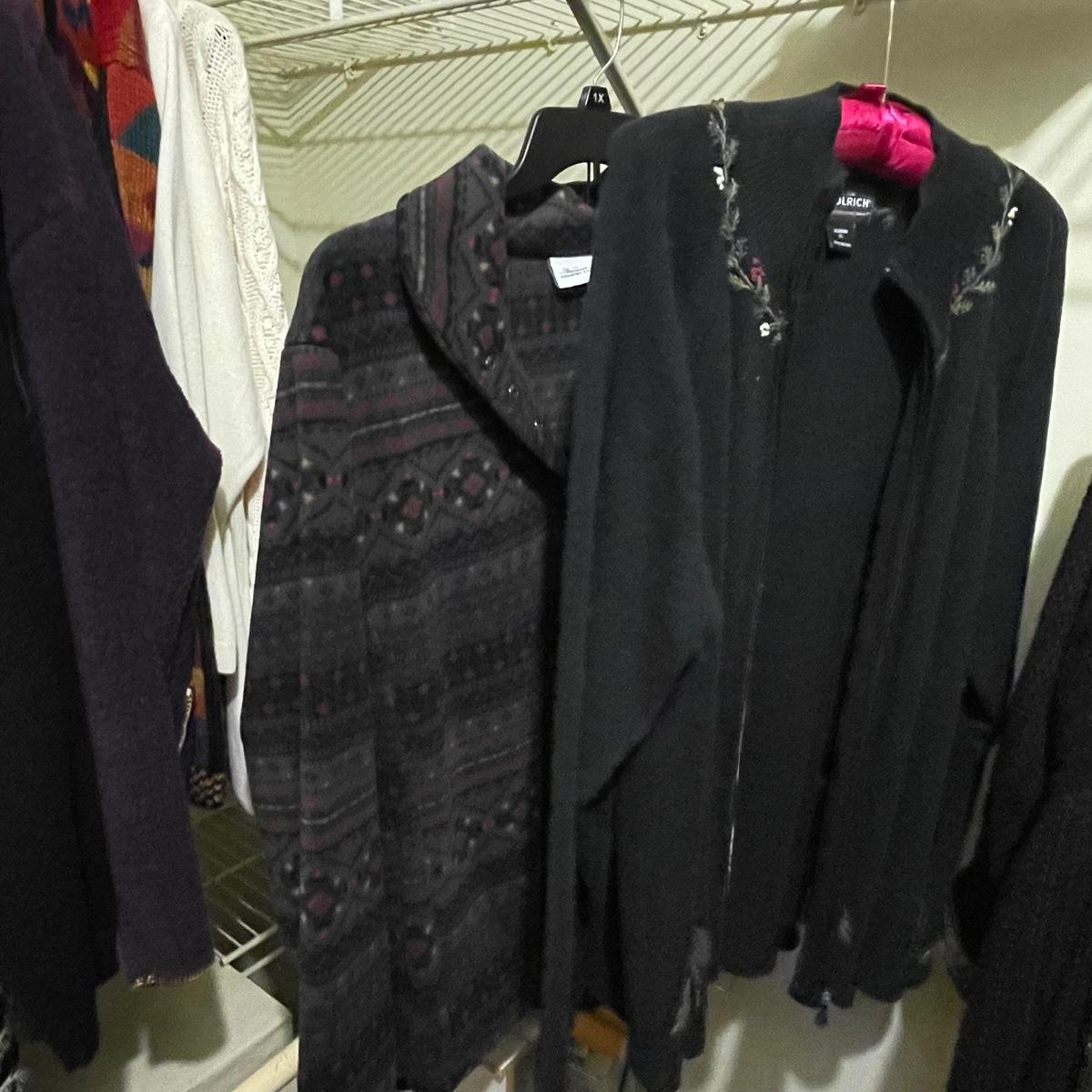 A great assortment of quality clothing with some great name brands here in mostly XL and 1X sizes. Lot also includes an Aran pure wool zippered cardigan from Ireland.