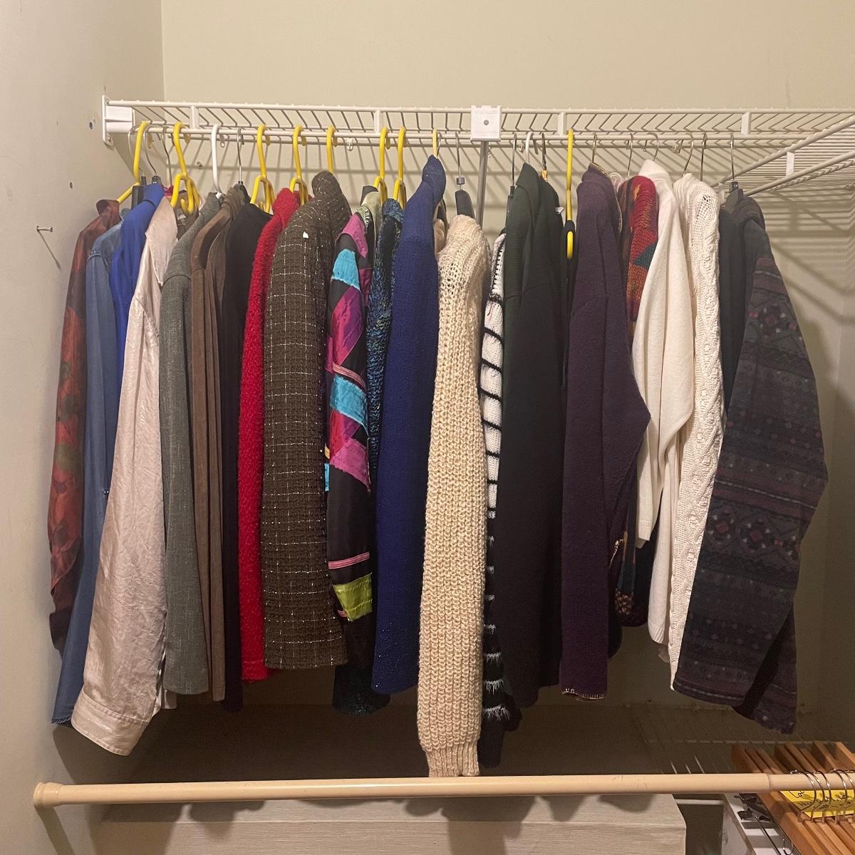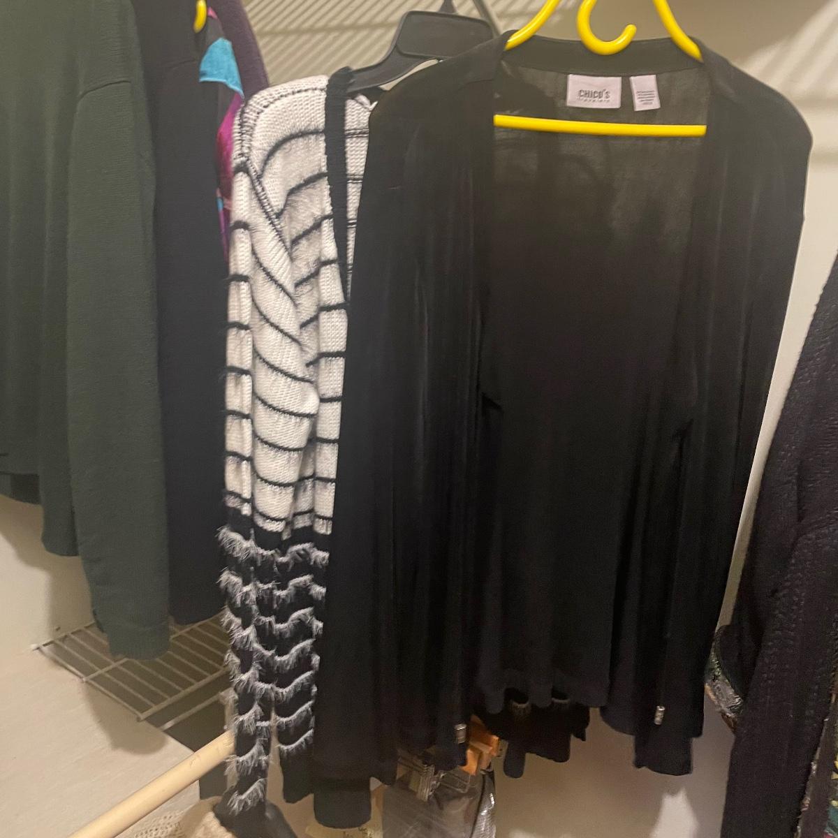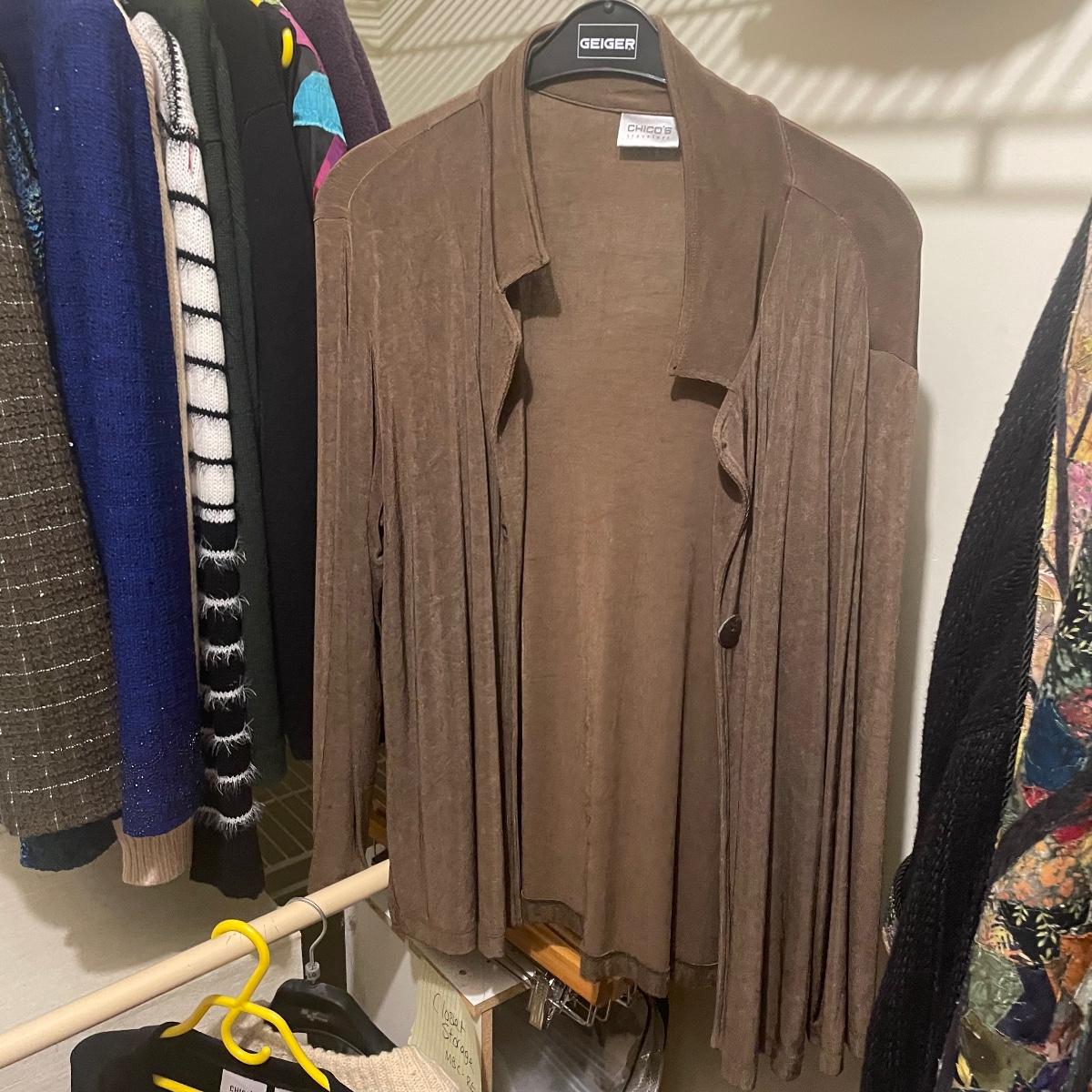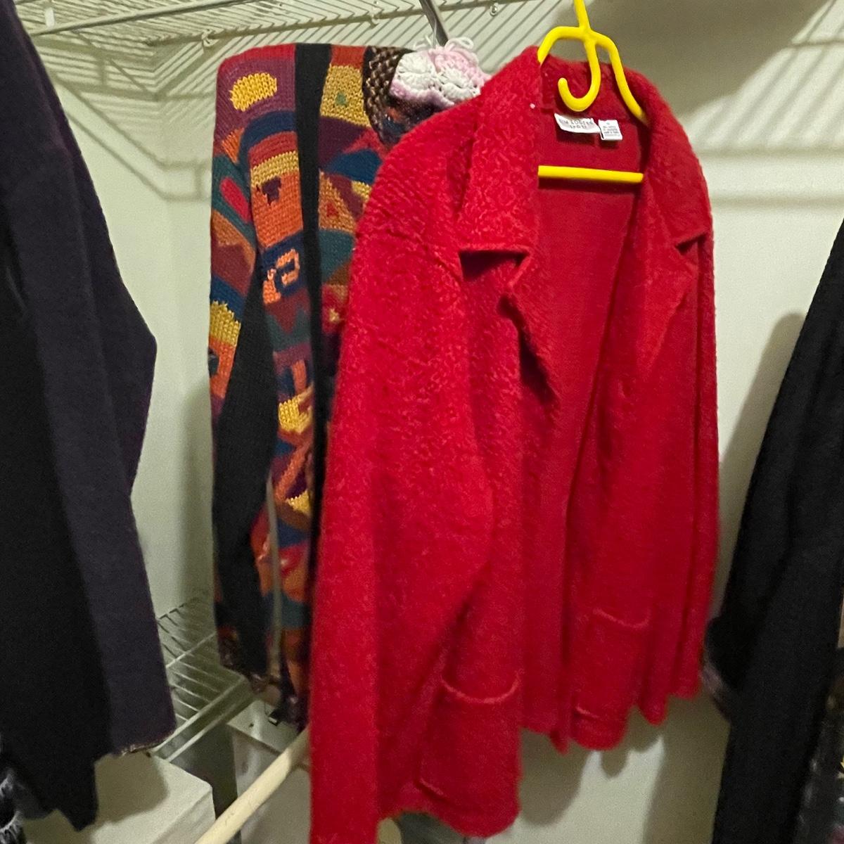 A great assortment of quality clothing with some great name brands here in mostly XL and 1X sizes. Lot also includes an Aran pure wool zippered cardigan from Ireland.