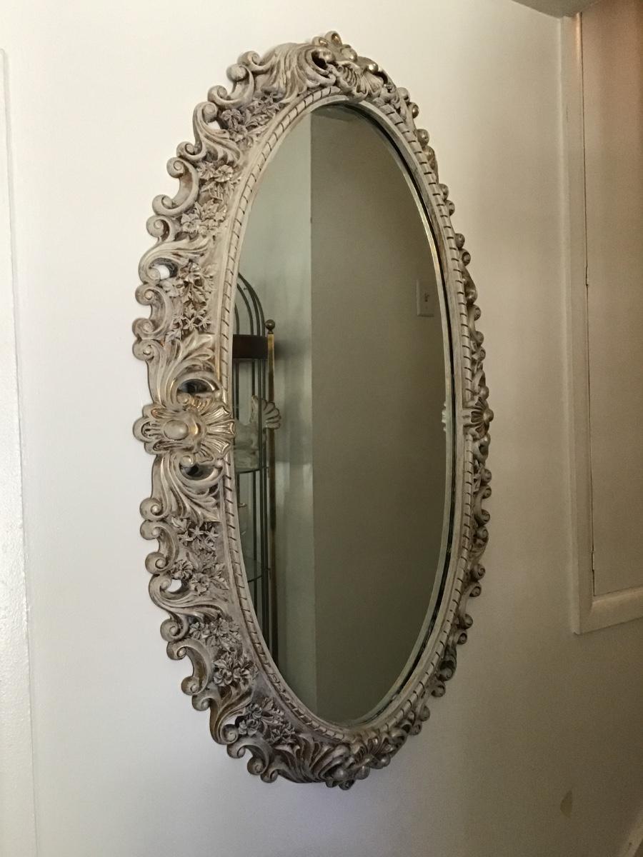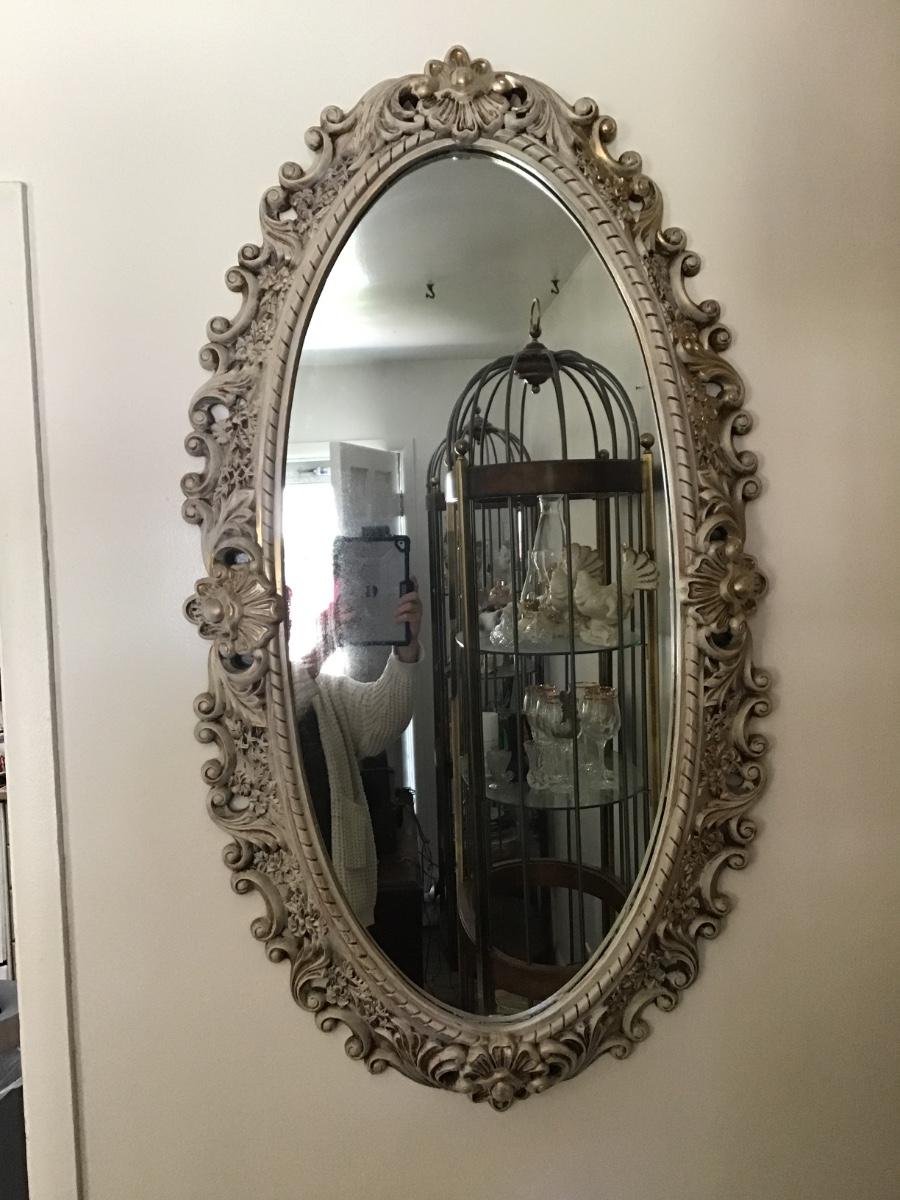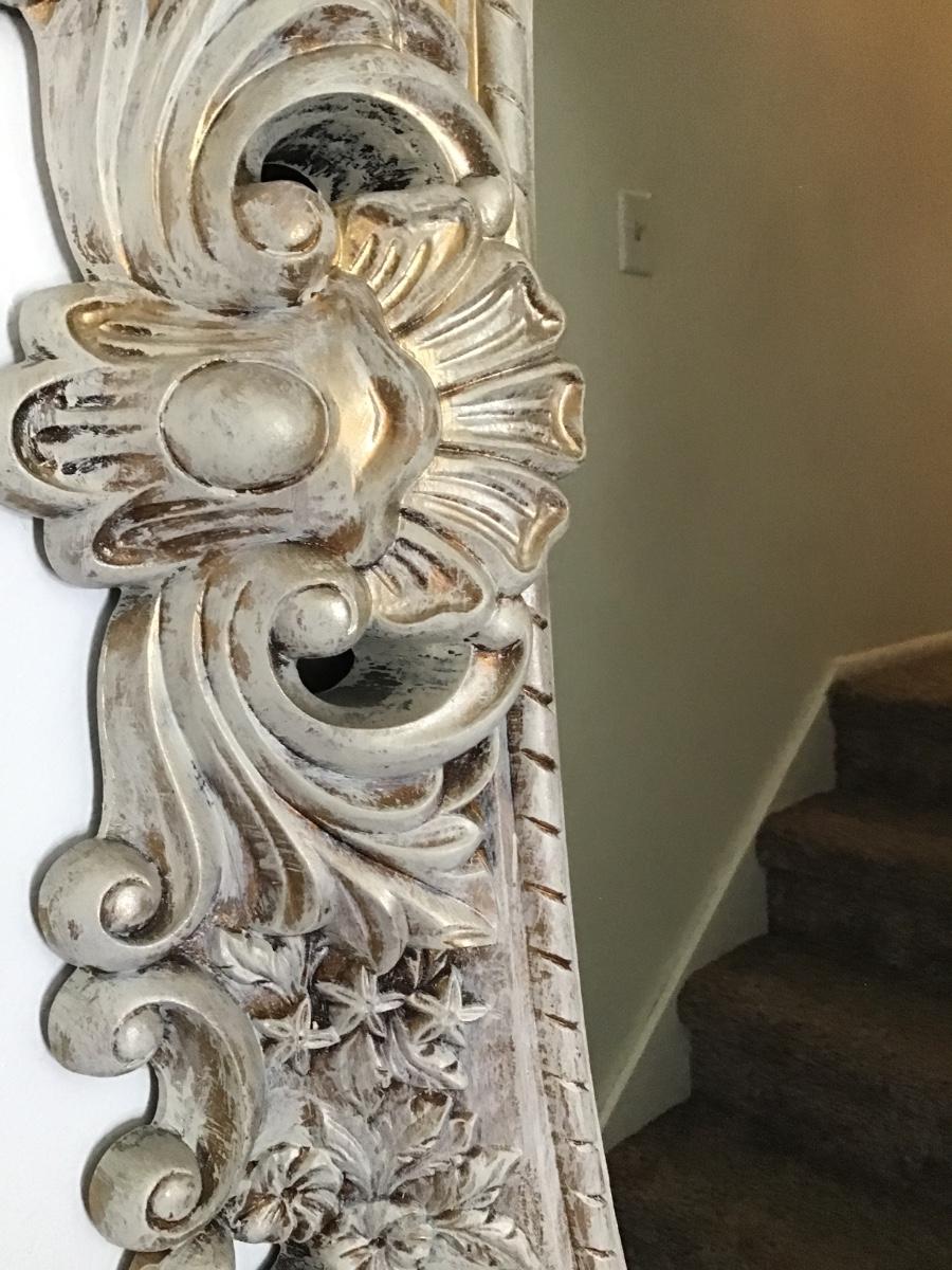 XLarge Mirror Whitewashed with Antique Gold Highlights. 4 Foot by 27
