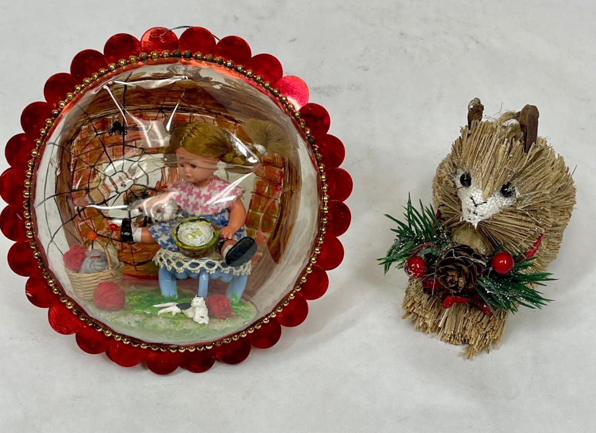 Vintage Christmas Ornaments - Diorama & Rustic Squirrel