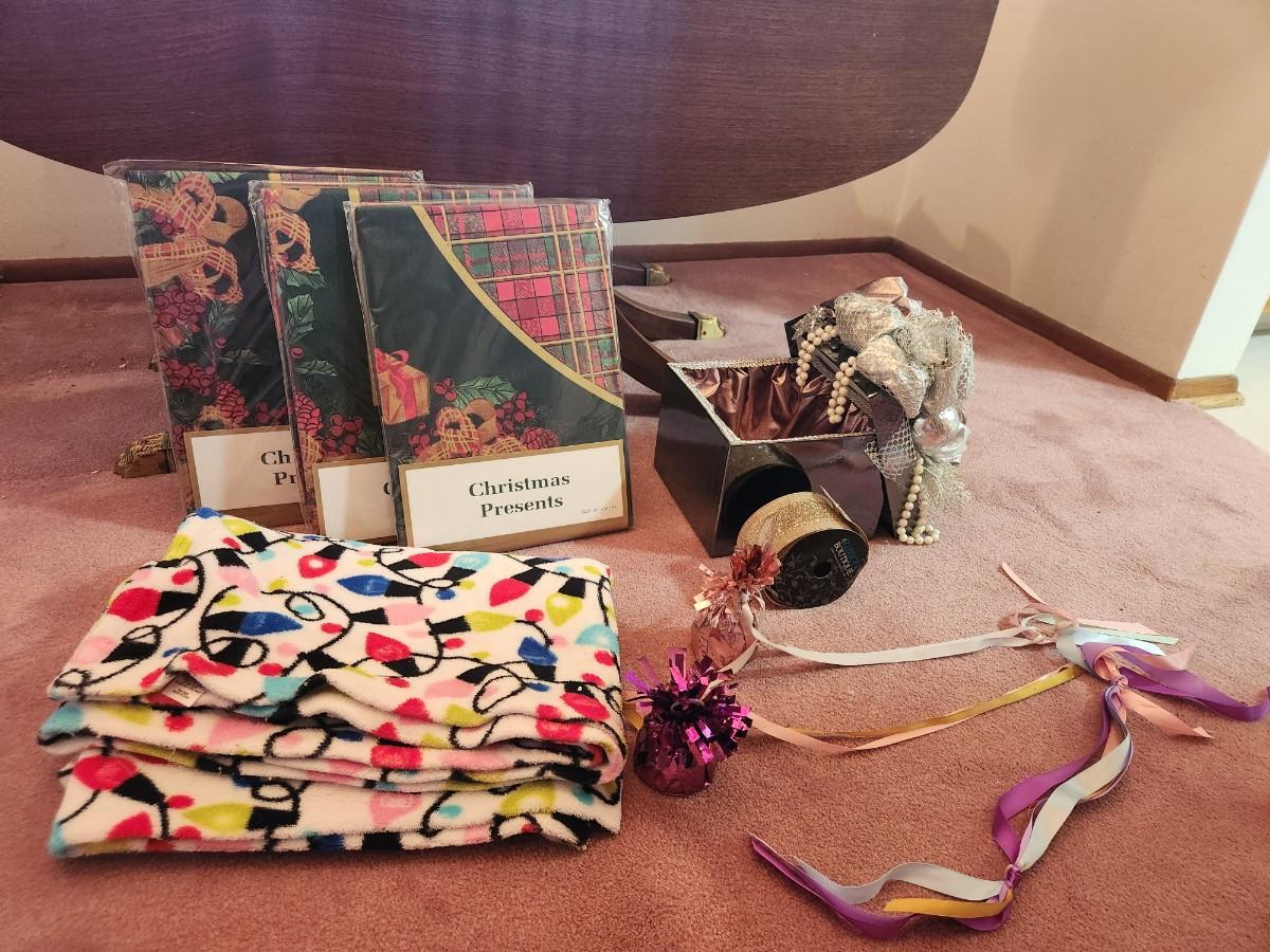 Xmas tablecloths, blanket, and present box
