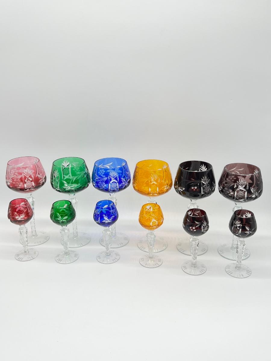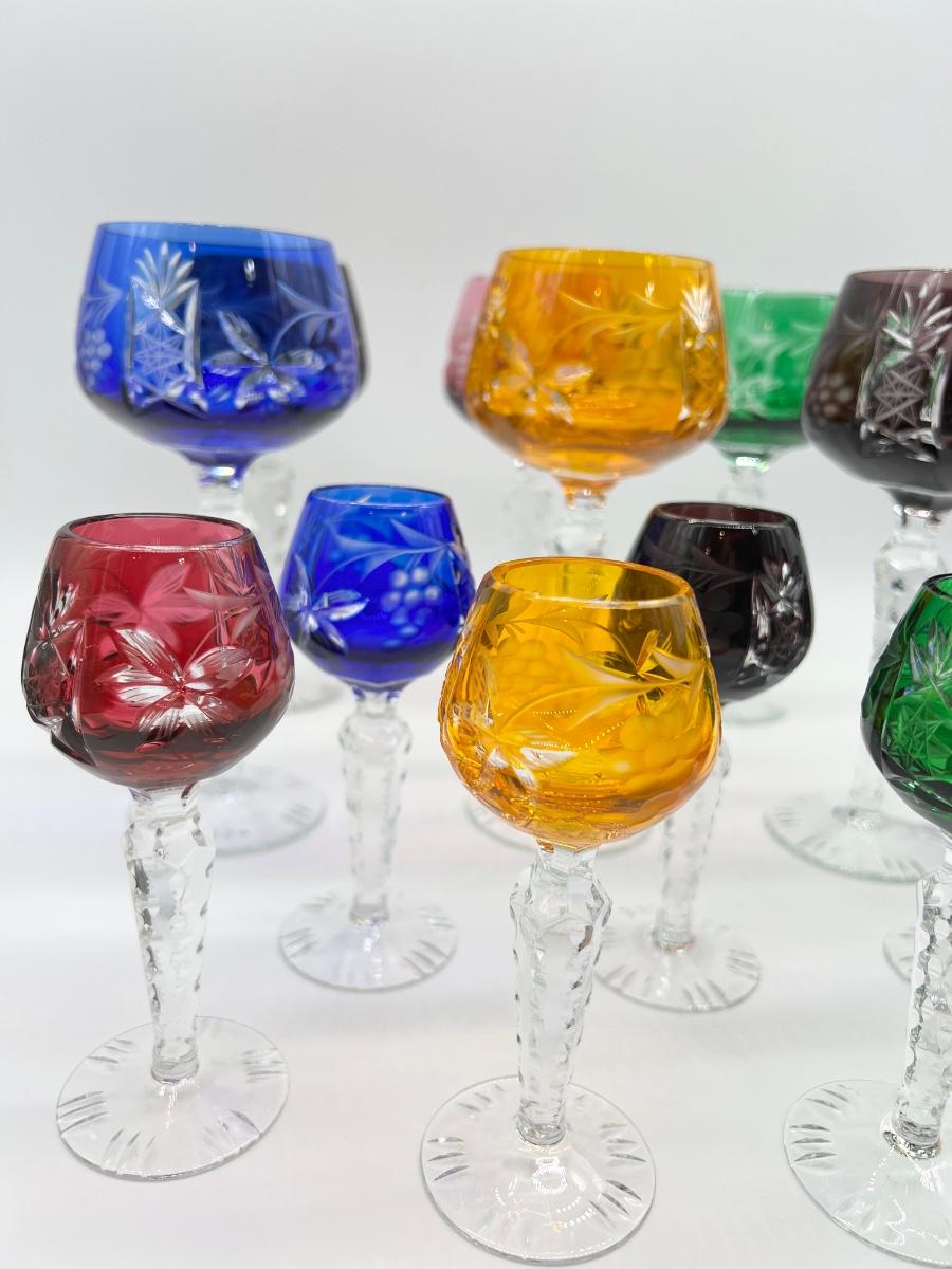 BOHEMIAN ~ Czech Cut ~ Set Of Twelve (12) Crystal Wine & Cordial Glasses