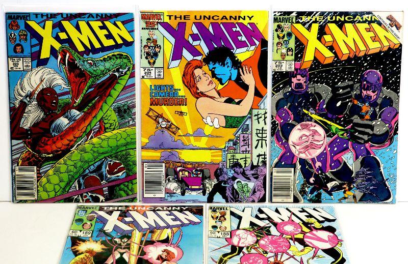 X-MEN #188 #189 #202 #204 #223 Copper Age Comic Books Set Marvel Comics 1984-87