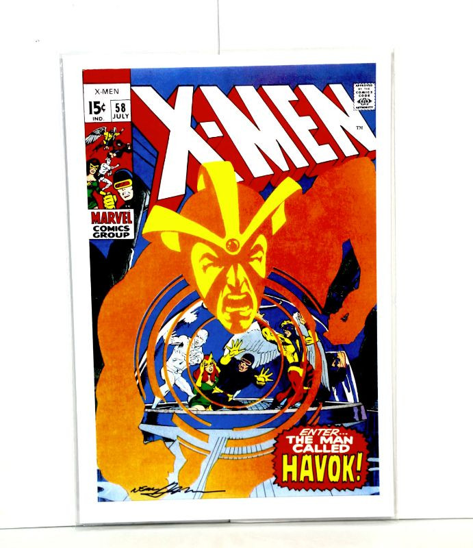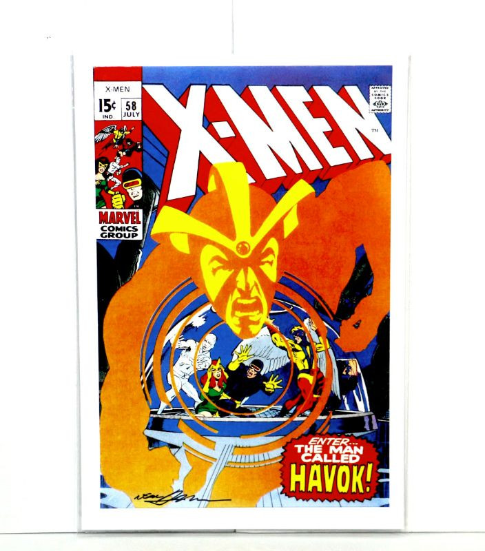 Original Comic Art Print hand signed by artist Neal Adams, featuring Neal Adams cover art for X-Men #58 (Marvel, 1969) with 1st appearance of Havok. High quality art print in large size 13" x 19", on high quality heavy stock poster paper, ready for framing, ships flat in safe packaging - Collector's Item!