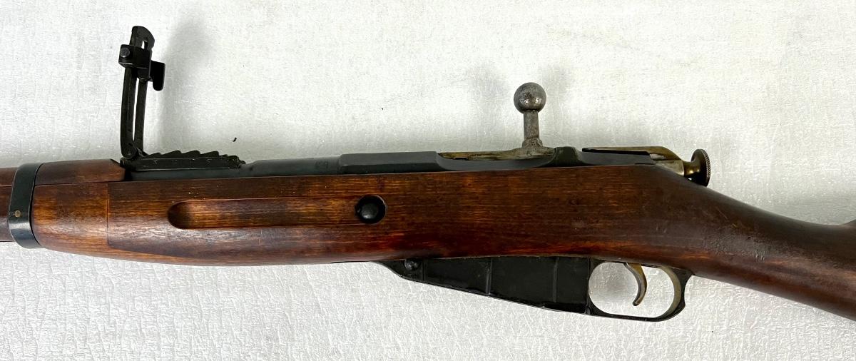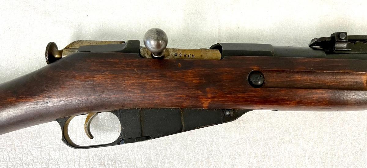 Caliber is 7.62-54. Has matching numbers. Serial number 82869. Age related wear. Not tested. SOLD AS IS.