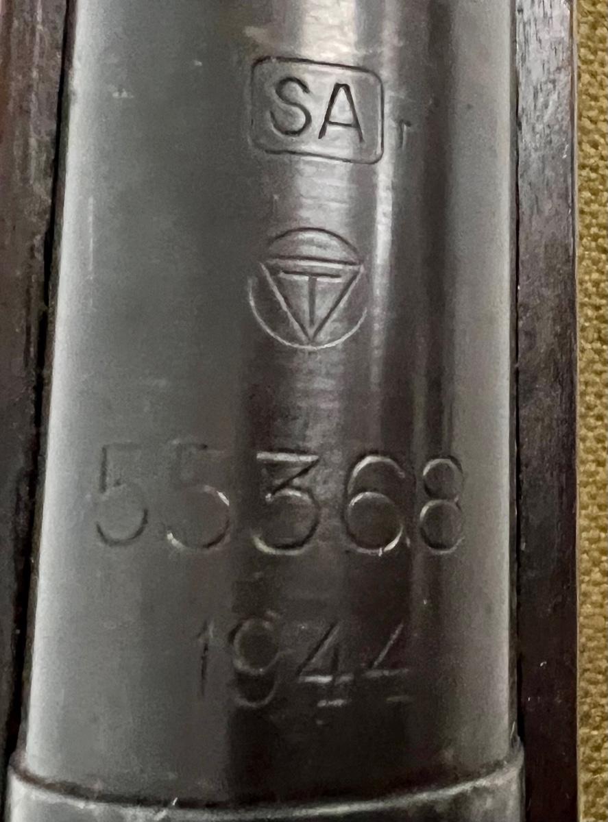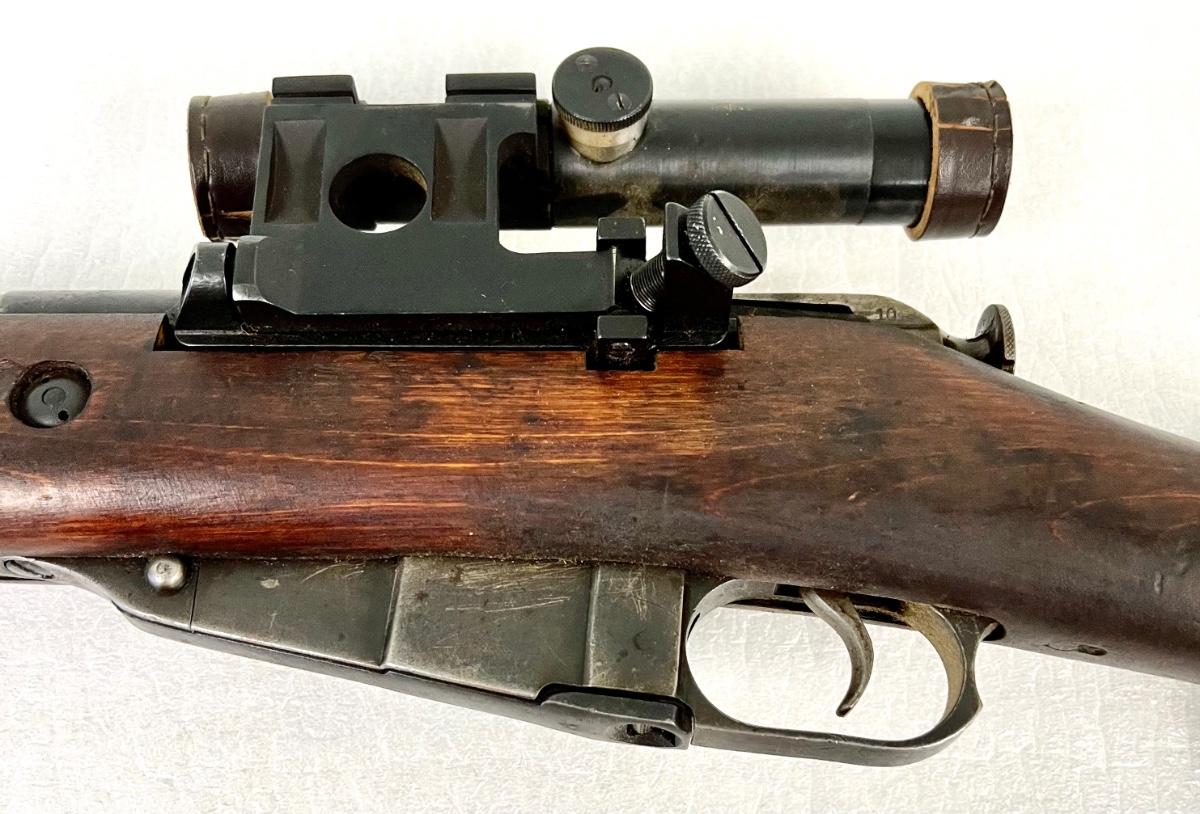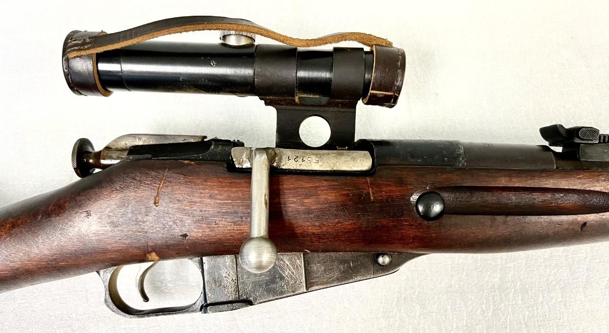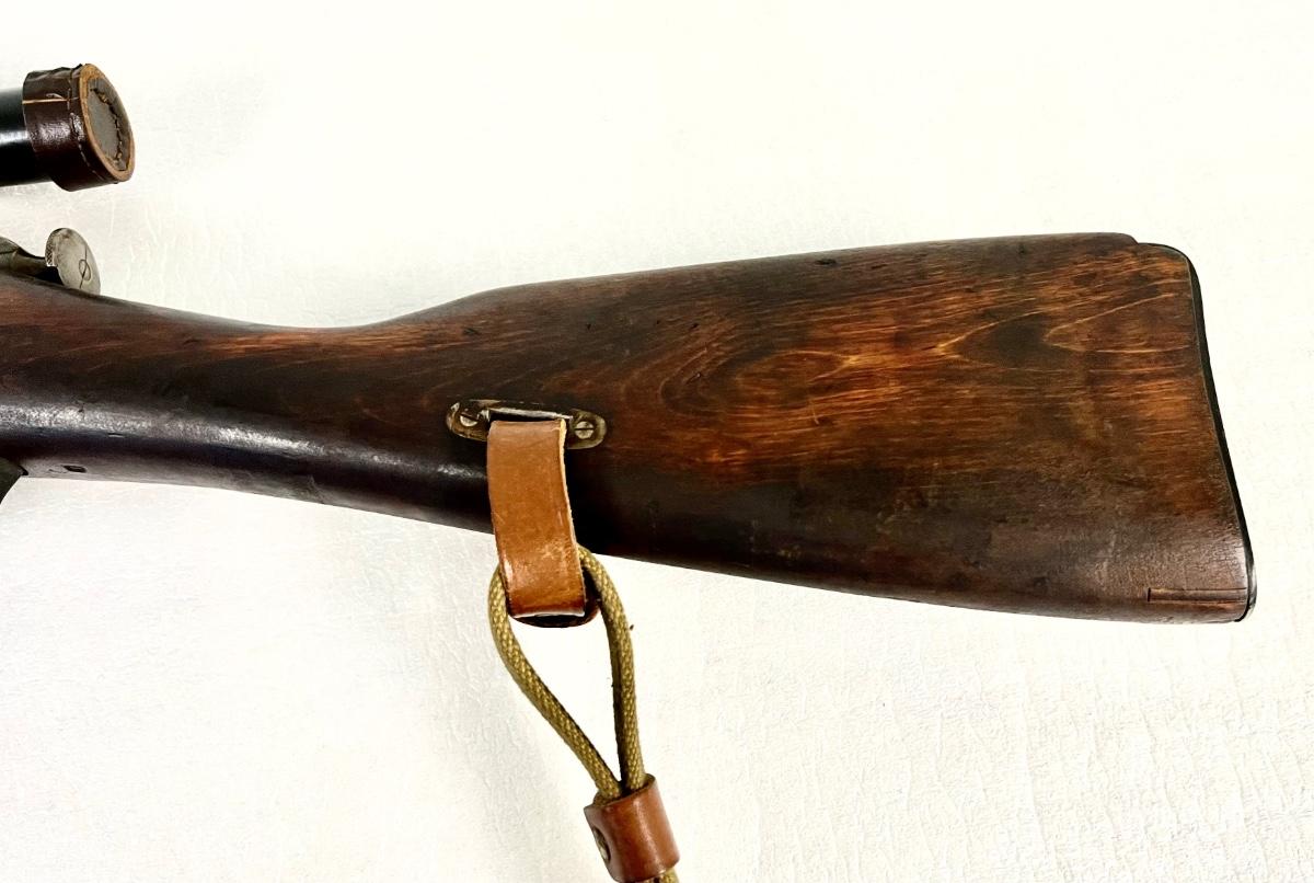 [XR] 1944 Russian Sniper Rifle. Believed to be Izhevsk model. P.U.K. scope date is 1966. Scope has believed to be original leather cover. Caliber is 7.62-54. Serial number 55368. Age related wear. Not tested. SOLD AS IS.