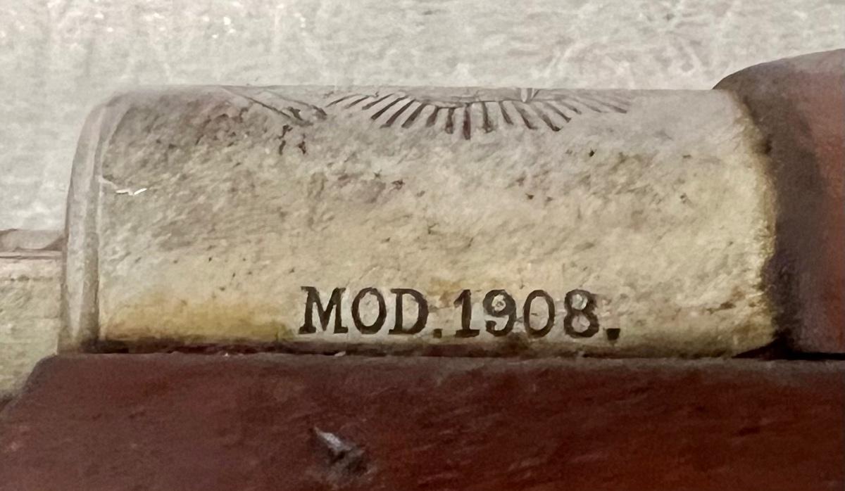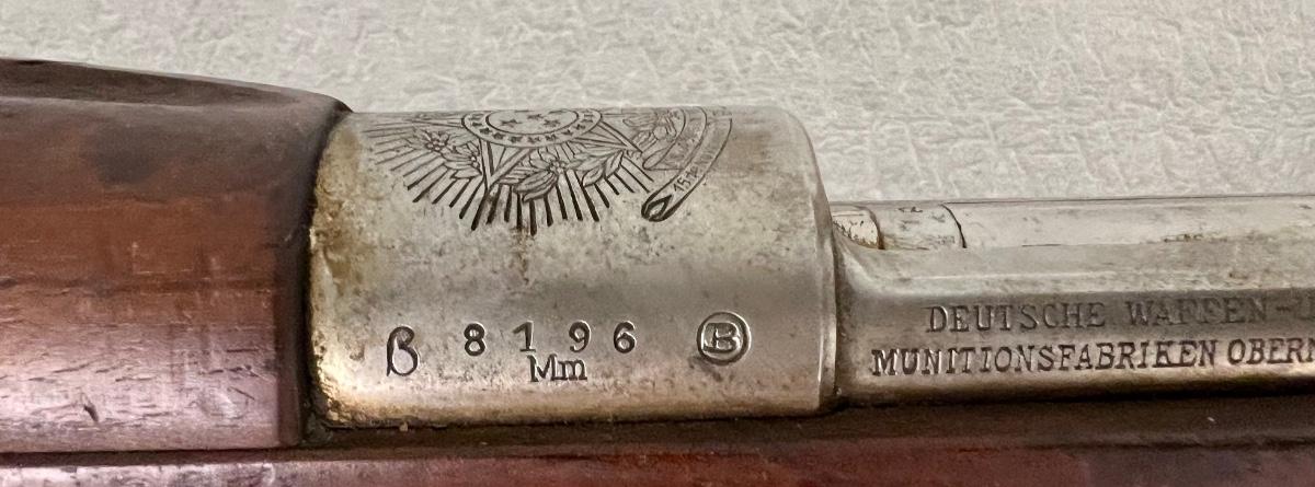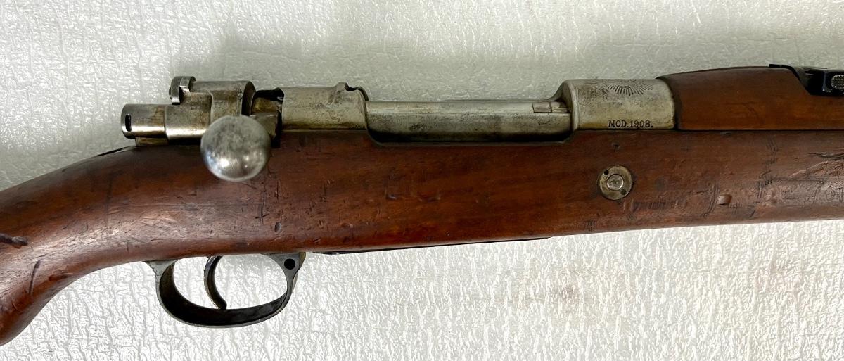 Stamped Gewehr 98 Mauser, Model 1908. Caliber is 7x57mm. Serial number 8196. Age related wear. Not tested. SOLD AS IS.