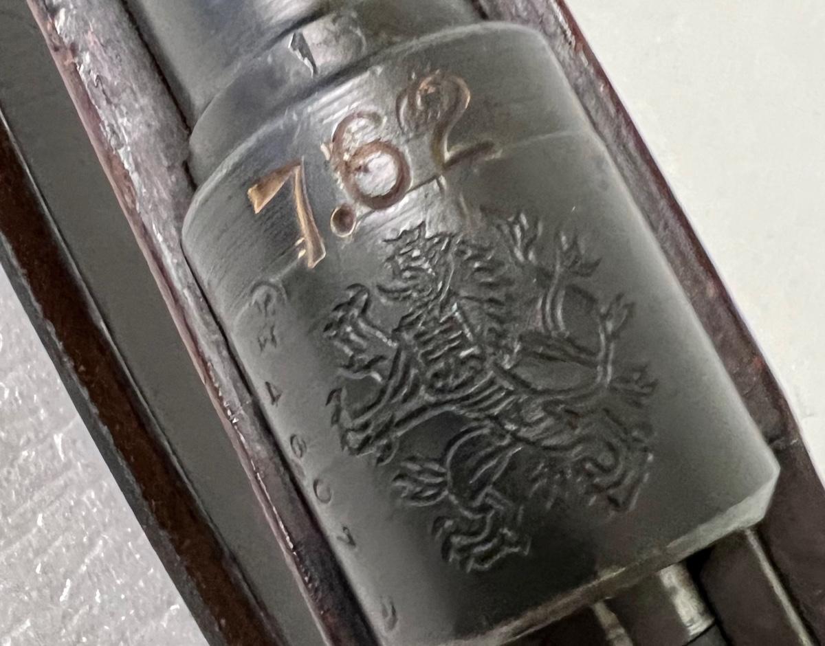 Has matching numbers. Caliber is stamped 7.62, and has possibly been converted from 8mm. Serial number is 4607. Not tested. SOLD AS IS.