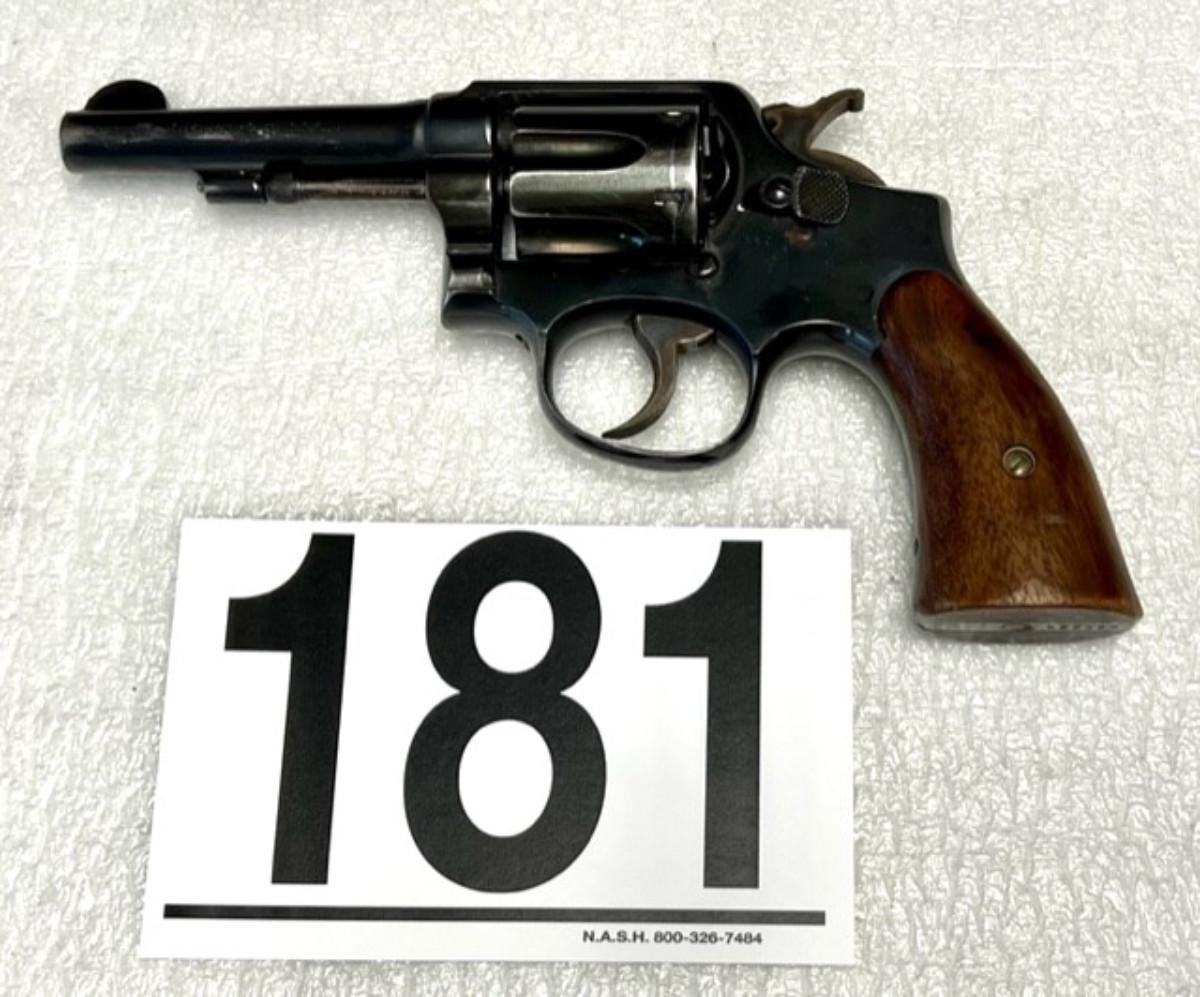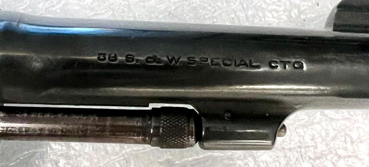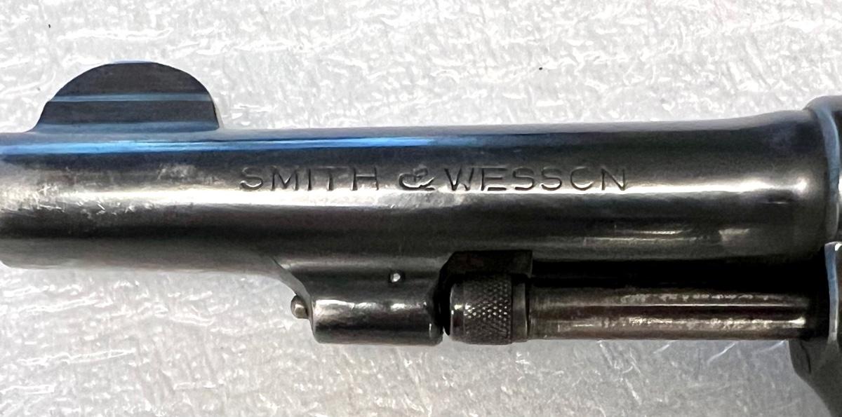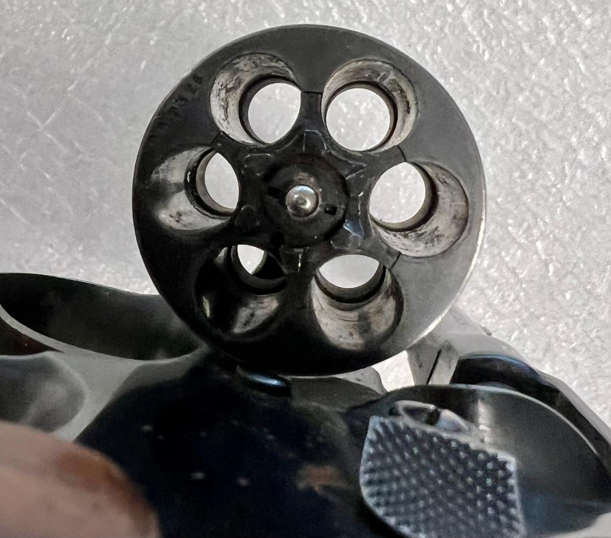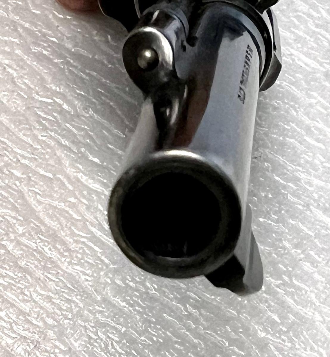 [J] Six round capacity. Barrel length is 4". Minimal bluing loss, commensurate with use. Serial number 997326. Not tested. SOLD AS IS.