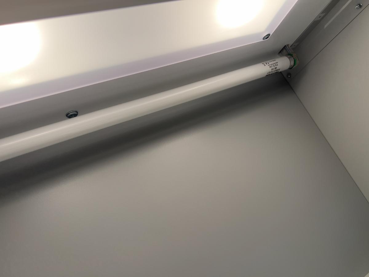 The D65 version simulates Daylight at a color temperature of 6,500K, what we call noontime. It is ideal for evaluating hard/soft goods, textiles and coatings and comparing FHI Color Guide Samples.