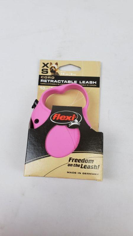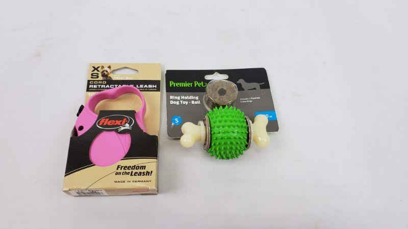 XS Pink Retractable Leash (up to 10 lbs) & Ring Holding Dog Toy (S/1-10 lbs) Includes 4 Rawhide Chew Rings - New