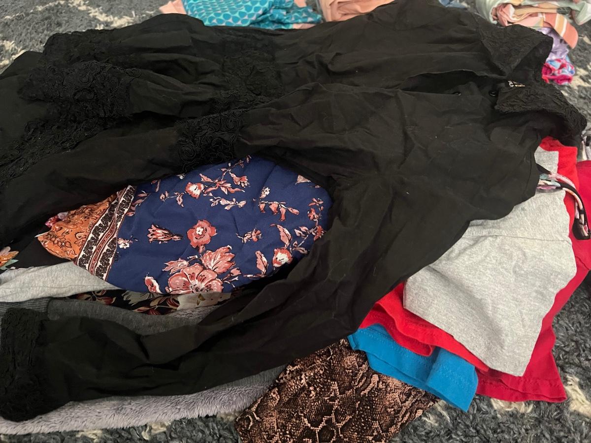 Includes skirt, shorts, pants, swimsuits, North Face jacket, dresses, and tops