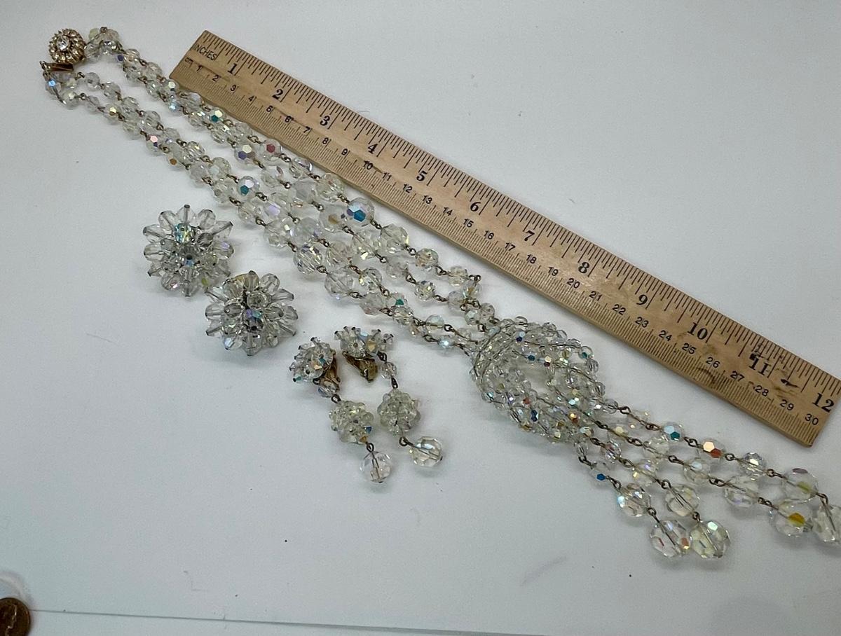 pc Rhienstone Jewelry lot Necklace 2 pairs of Earrings