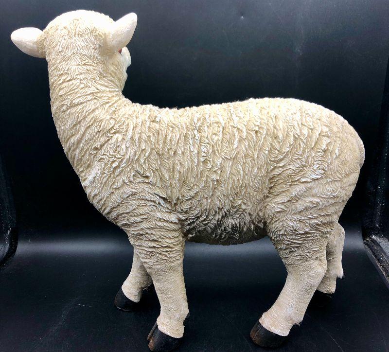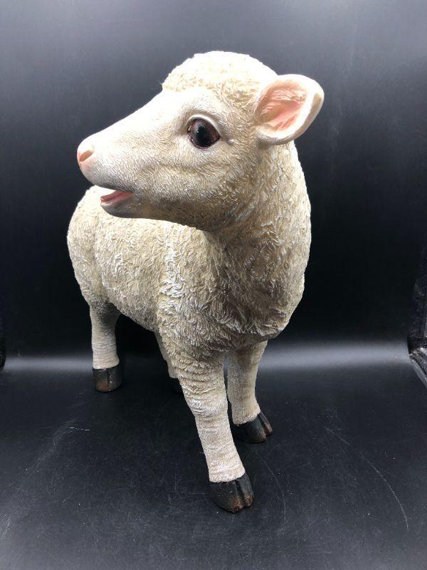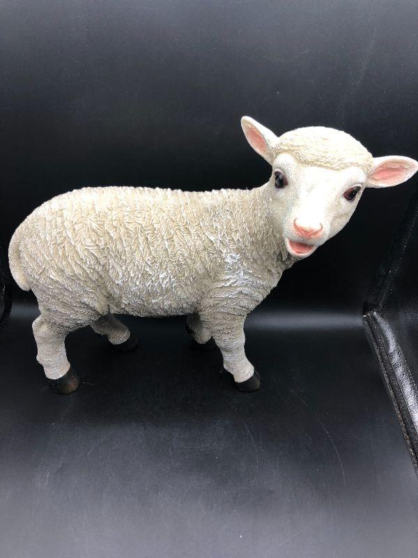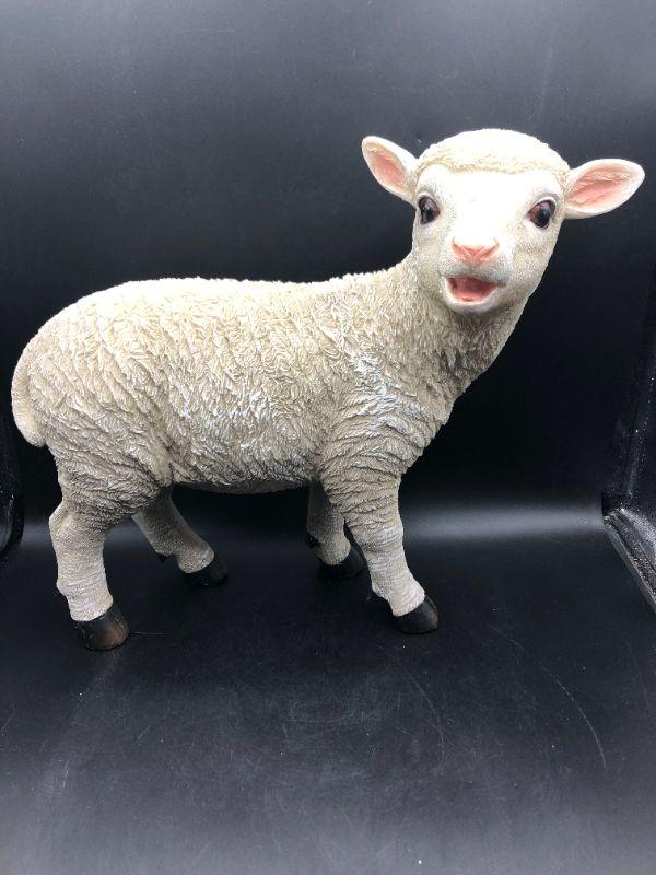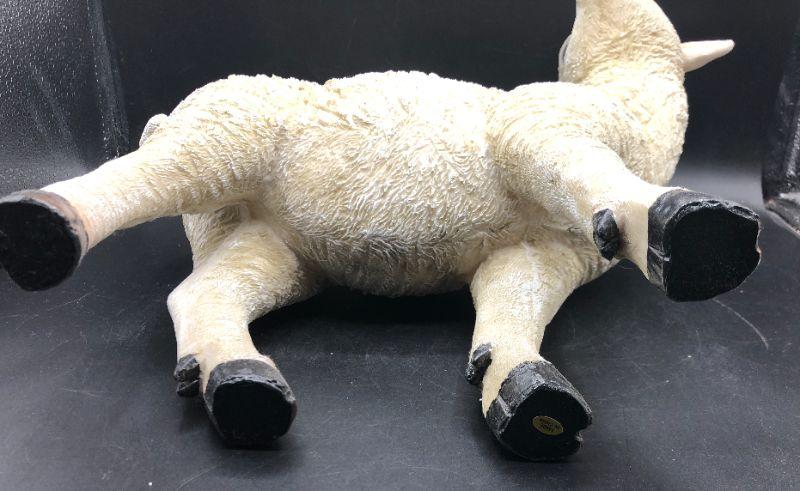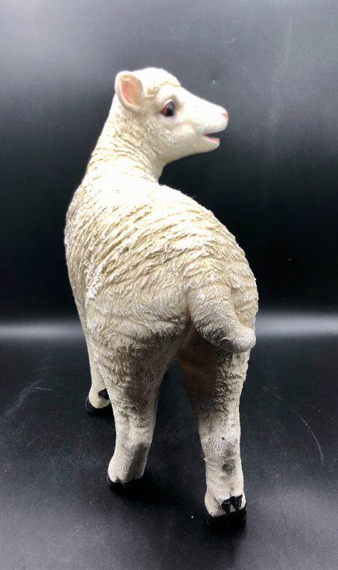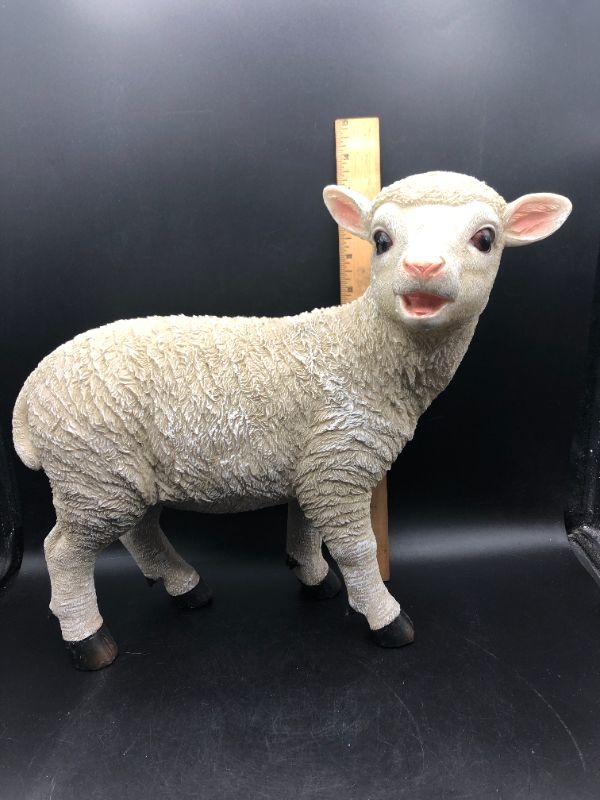 Resin material, young lamb. Measures approx. 13" tall x 15" long.