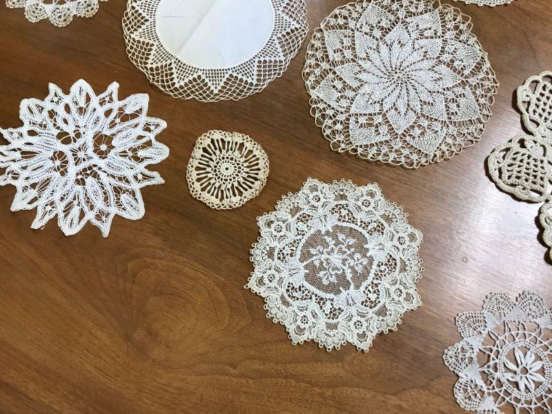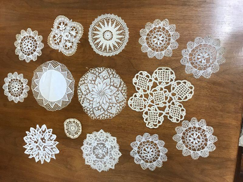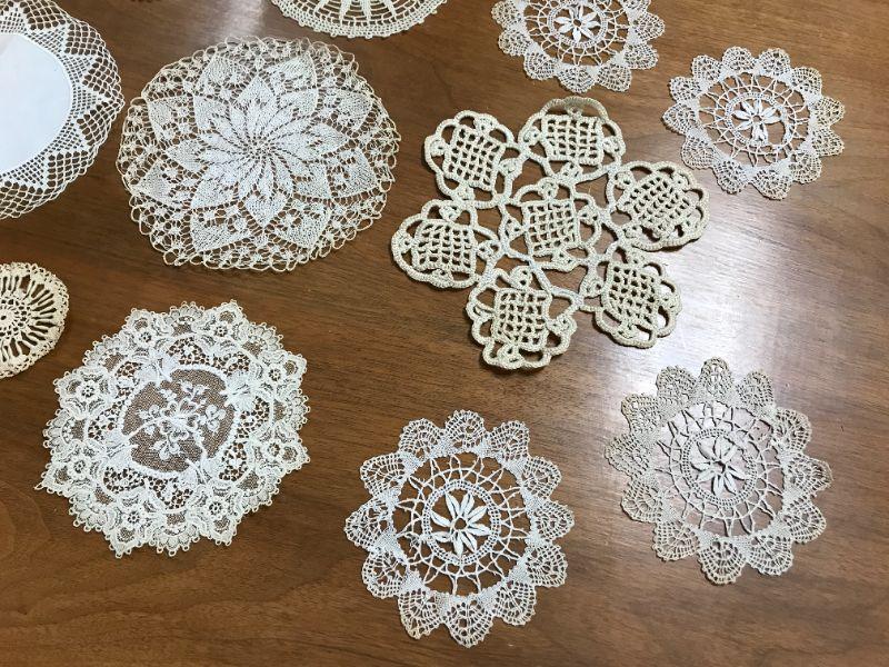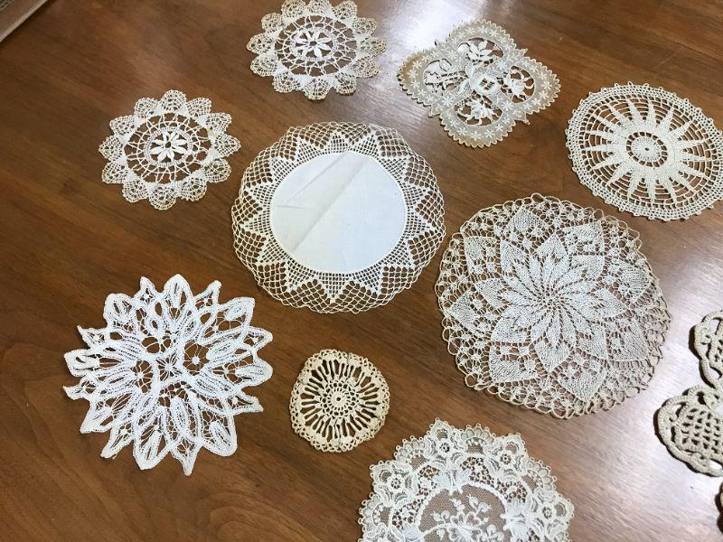 Mixed lot of vintage doilys. Different sizes and shapes. May have light spots.